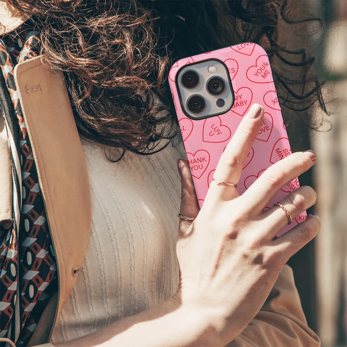 Protect your phone with style with this durable phone case featuring an eye-catching hearts pattern. Compatible with iPhones, Samsungs, and Pixel phones, this case provides reliable protection from bumps and scratches while adding a touch of personality to your device.