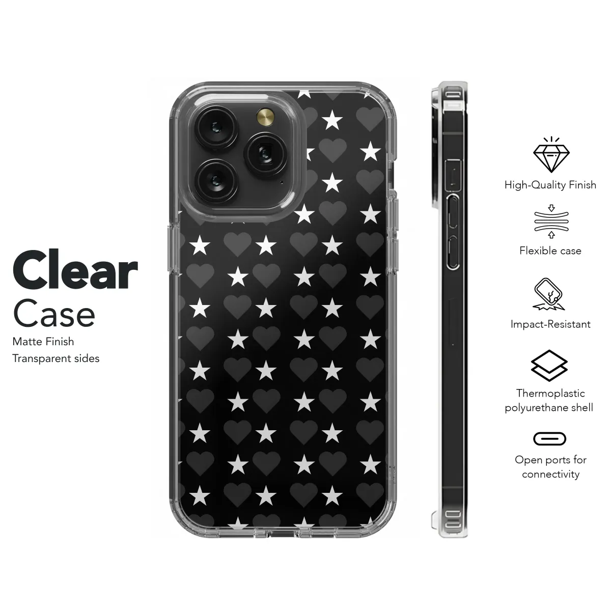 Adorn your device with this stylish, minimalist design featuring a repeating pattern of hearts and stars. The classic combination of black and white creates a timeless look that's both chic and versatile, perfect for adding a touch of understated elegance to your personal style. This high-quality print ensures vibrant colors and sharp detail that will last. The simple yet captivating design is equally suitable for everyday use or special occasions, making it a thoughtful gift for yourself or a loved one. This sophisticated pattern subtly expresses a modern aesthetic, blending seamlessly with any outfit or occasion. Its clean lines and bold graphic elements provide a visually striking contrast, making it stand out from the ordinary. The enduring appeal of hearts and stars ensures this design remains fashionable and fresh, a perfect statement piece for your accessory. Elevate your everyday carry with this effortlessly cool and contemporary design. Express your unique personality with this stylish and durable print. #heartsandstars #minimalistdesign #blackandwhite #graphicdesign #stylish #elegant #modern #fashion #accessories #gift