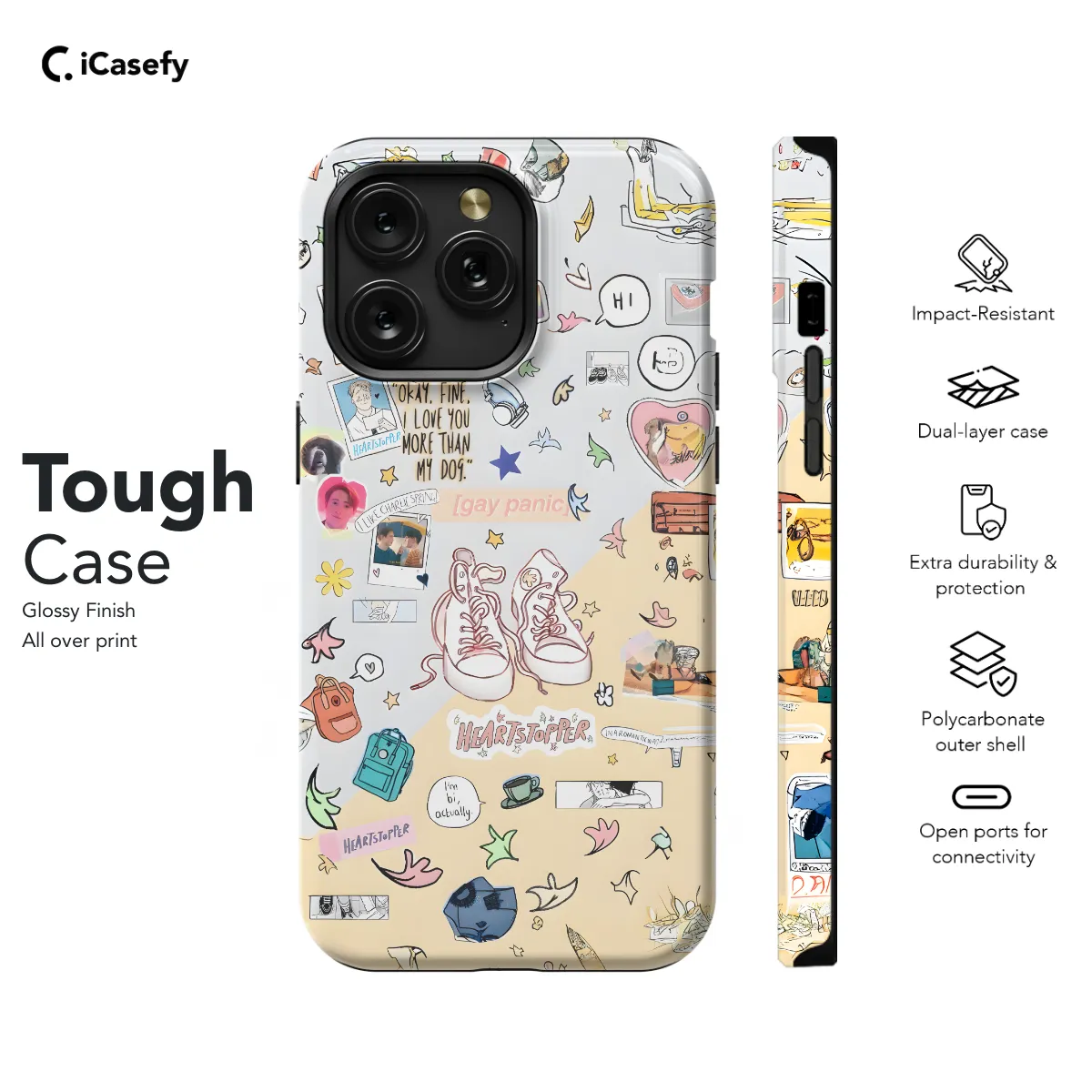 Protect your phone in style with our vibrant Heartstopper phone case. Compatible with iPhone, Samsung, and Pixel models, this case features a stunning design inspired by the beloved graphic novel series. Its durable construction safeguards your phone from bumps, scratches, and everyday wear and tear, while the slim profile ensures a comfortable grip. Show off your love for Heartstopper with this eye-catching accessory, perfect for any fan.