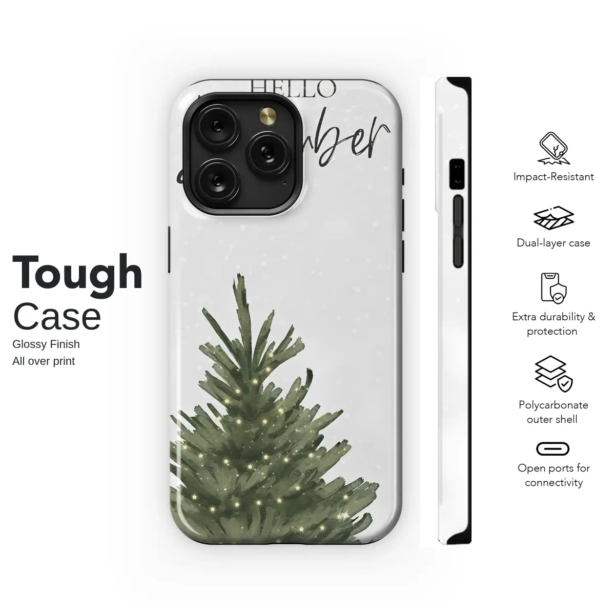 Welcome the coziest month of all with this enchanting 'Hello December' artwork, designed to wrap your favorite device in the magic of the season. Imagine a crisp, quiet winter morning, the air still and serene as soft snowflakes drift down from a pale sky. This design captures that exact moment. An elegant, hand-lettered script announces the arrival of December, floating above a charming watercolor Christmas tree. This isn't just any tree; its lush, green branches are lovingly detailed and adorned with a string of tiny, twinkling fairy lights that cast a warm, inviting glow. At its base, nestled in a soft blanket of fresh snow, are two beautifully wrapped presents, their ribbons tied in perfect bows, whispering of the joy of giving and receiving. This festive scene is more than just a picture; it’s a feeling. It's the perfect accessory for anyone who adores the holiday season, a daily reminder of yuletide carols, warm gatherings, and the serene beauty of a winter wonderland. Carry this little piece of Christmas magic with you through all your holiday adventures, from festive markets to cozy nights by the fire. It’s a thoughtful gift for a loved one or a special treat to celebrate the most wonderful time of the year in style.