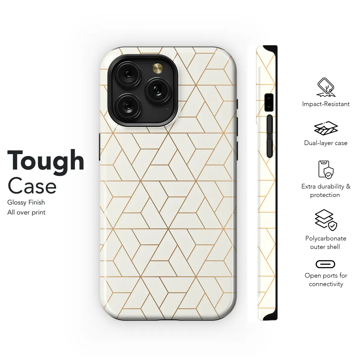 Hexagonal geometric shapes with a grid line pattern on a minimalist, clear phone case. Protects your phone from scratches and bumps. Choose from a variety of styles and colors to match your personality. Perfect for those who love modern design and want to keep their phone safe.