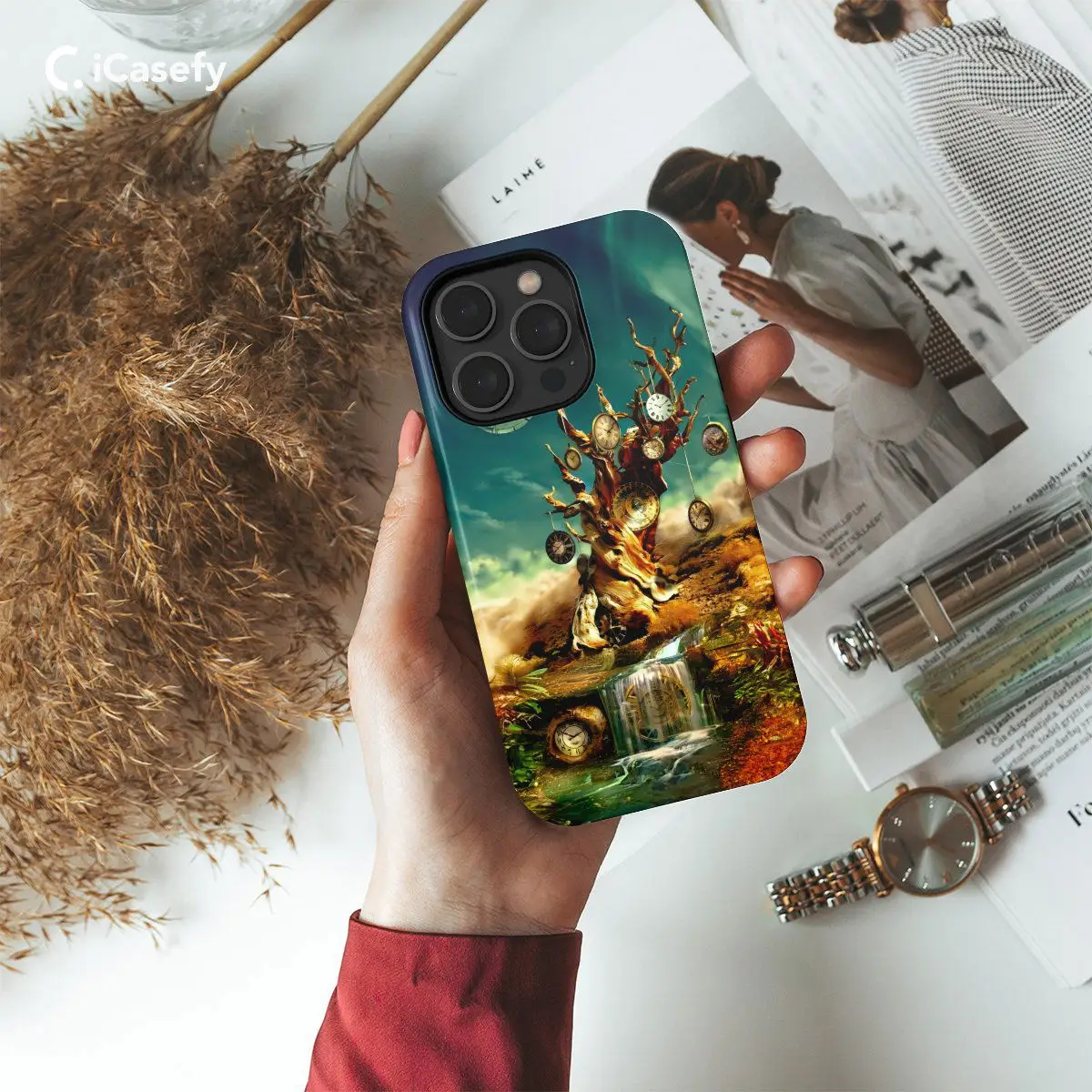 Step into the whimsical world of surrealist art with our Surreal Clock Tree phone case, paying homage to Salvador Dali's masterpiece, "Hitecera." This captivating design features a surreal blend of clock imagery intertwined with the majestic form of a tree, echoing Dali's fascination with time and nature. Crafted for both style and protection, it offers precise cutouts for easy access to ports and buttons. Let this accessory be a tribute to Dali's surrealism and his exploration of the subconscious.