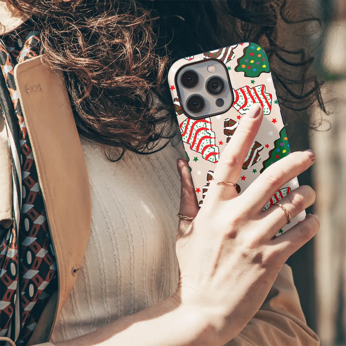 Wrap your world in the sweet nostalgia of holiday baking with this utterly charming design. This delightful pattern captures the magic of a kitchen filled with Christmas cheer, featuring an array of beautifully decorated tree-shaped cookies. Imagine freshly baked treats, some generously iced with rich chocolate and others with creamy white frosting, all adorned with festive red and green sprinkles. Playful green trees dotted with colorful candy ornaments dance among them, scattered like joyful memories on a soft, warm background. Little red, green, and white stars twinkle between the treats, adding a sprinkle of extra magic to the scene. It’s a design that feels like a warm hug, evoking the cozy comfort of winter evenings, the scent of cinnamon and sugar, and the pure, simple joy of holiday traditions. Let this artwork be a daily reminder of the sweet moments that make the season so special. Perfect for anyone who adores the whimsical side of the holidays, this design brings the cheerful spirit of a Christmas cookie party right to your fingertips, making every day feel a little more merry and bright.
