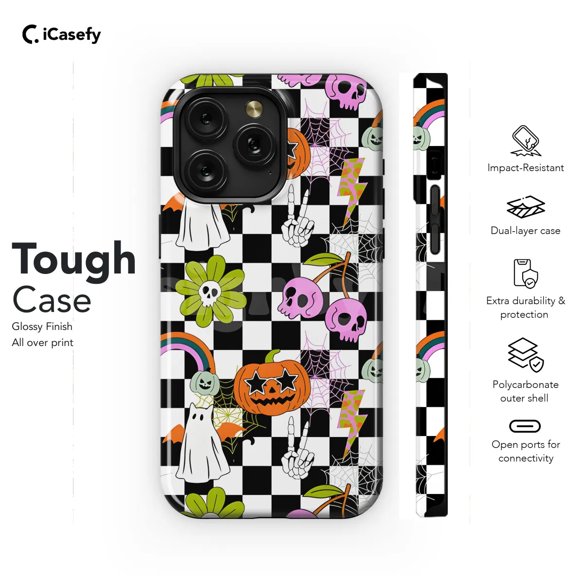 Get ready to raise hell with our spine-chilling Horror Cat and Pumpkin Rainbow Pattern Phone Case! This eerie yet adorable design features a spooky silhouette of a black cat and a vibrant pumpkin, all set against a mesmerizing rainbow backdrop. Whether you're a horror movie buff or simply love all things spooky, this phone case will add a touch of the macabre to your everyday style. Designed to fit iPhone and Samsung models, as well as Pixel 1803, this case offers both protection and a haunting touch of personality.