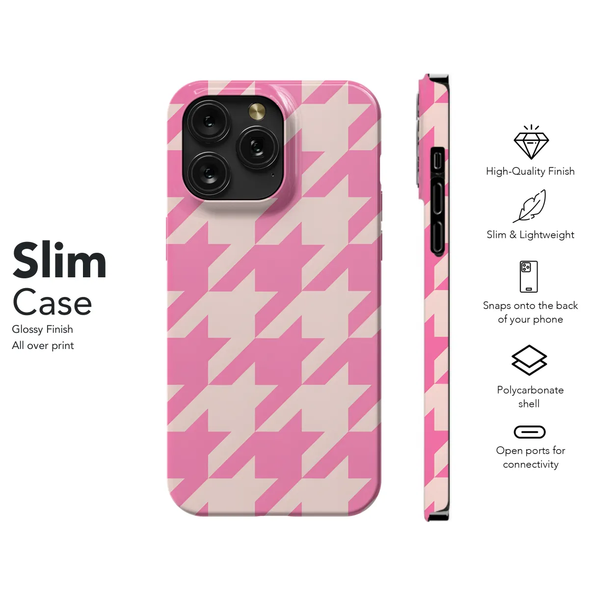 This trendy houndstooth phone case will keep your phone safe while adding a touch of style. The durable construction will protect your phone from bumps and scratches, while the stylish houndstooth pattern adds a touch of sophistication. Whether you're running errands or heading out for a night on the town, this phone case is the perfect way to add a bit of flair to your look.