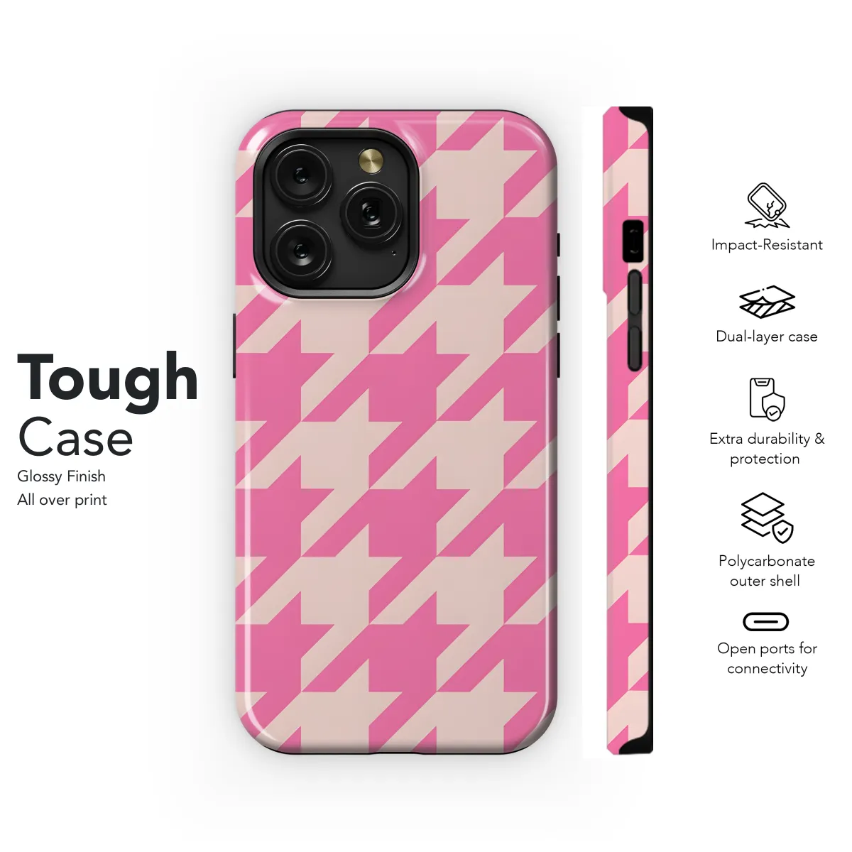 This trendy houndstooth phone case will keep your phone safe while adding a touch of style. The durable construction will protect your phone from bumps and scratches, while the stylish houndstooth pattern adds a touch of sophistication. Whether you're running errands or heading out for a night on the town, this phone case is the perfect way to add a bit of flair to your look.