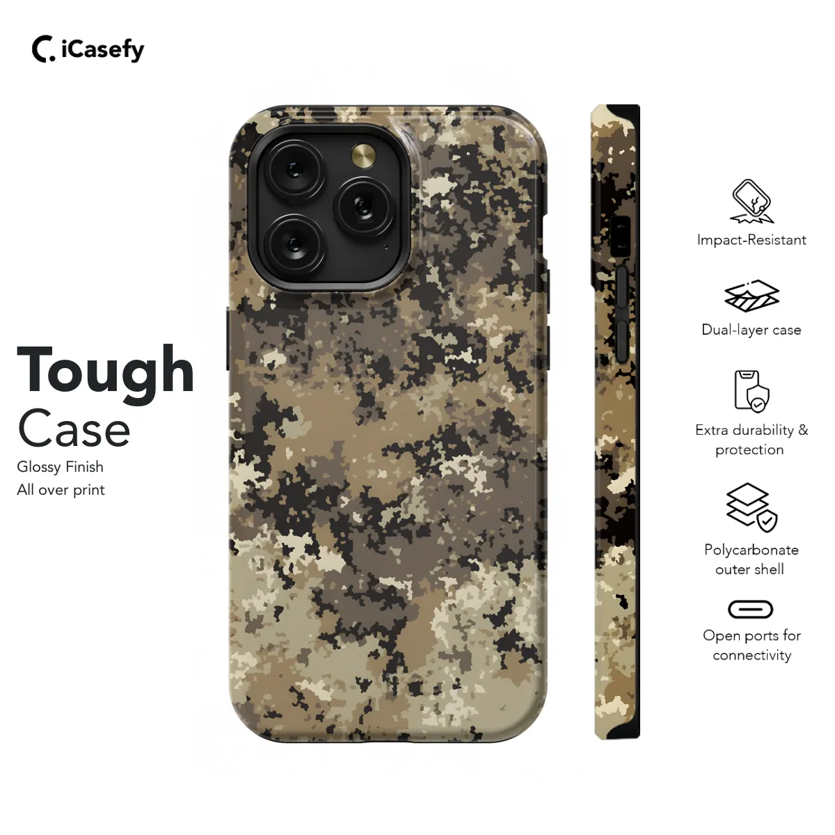 Shield your phone in the great outdoors with our rugged camouflage phone case. Made from durable materials, it provides maximum protection against scratches, bumps, and drops. Its non-slip grip ensures a secure hold, even in the wildest adventures. Available for various iPhone, Samsung, and Pixel models, this case seamlessly blends with your camo gear, keeping your phone safe and concealed.