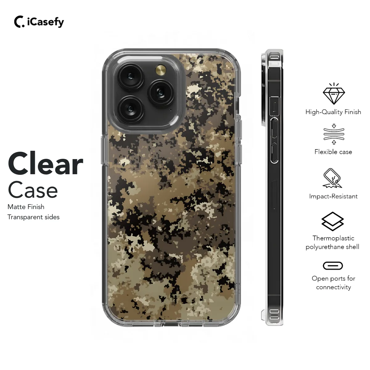 Shield your phone in the great outdoors with our rugged camouflage phone case. Made from durable materials, it provides maximum protection against scratches, bumps, and drops. Its non-slip grip ensures a secure hold, even in the wildest adventures. Available for various iPhone, Samsung, and Pixel models, this case seamlessly blends with your camo gear, keeping your phone safe and concealed.