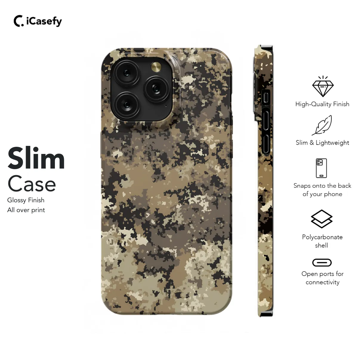 Shield your phone in the great outdoors with our rugged camouflage phone case. Made from durable materials, it provides maximum protection against scratches, bumps, and drops. Its non-slip grip ensures a secure hold, even in the wildest adventures. Available for various iPhone, Samsung, and Pixel models, this case seamlessly blends with your camo gear, keeping your phone safe and concealed.