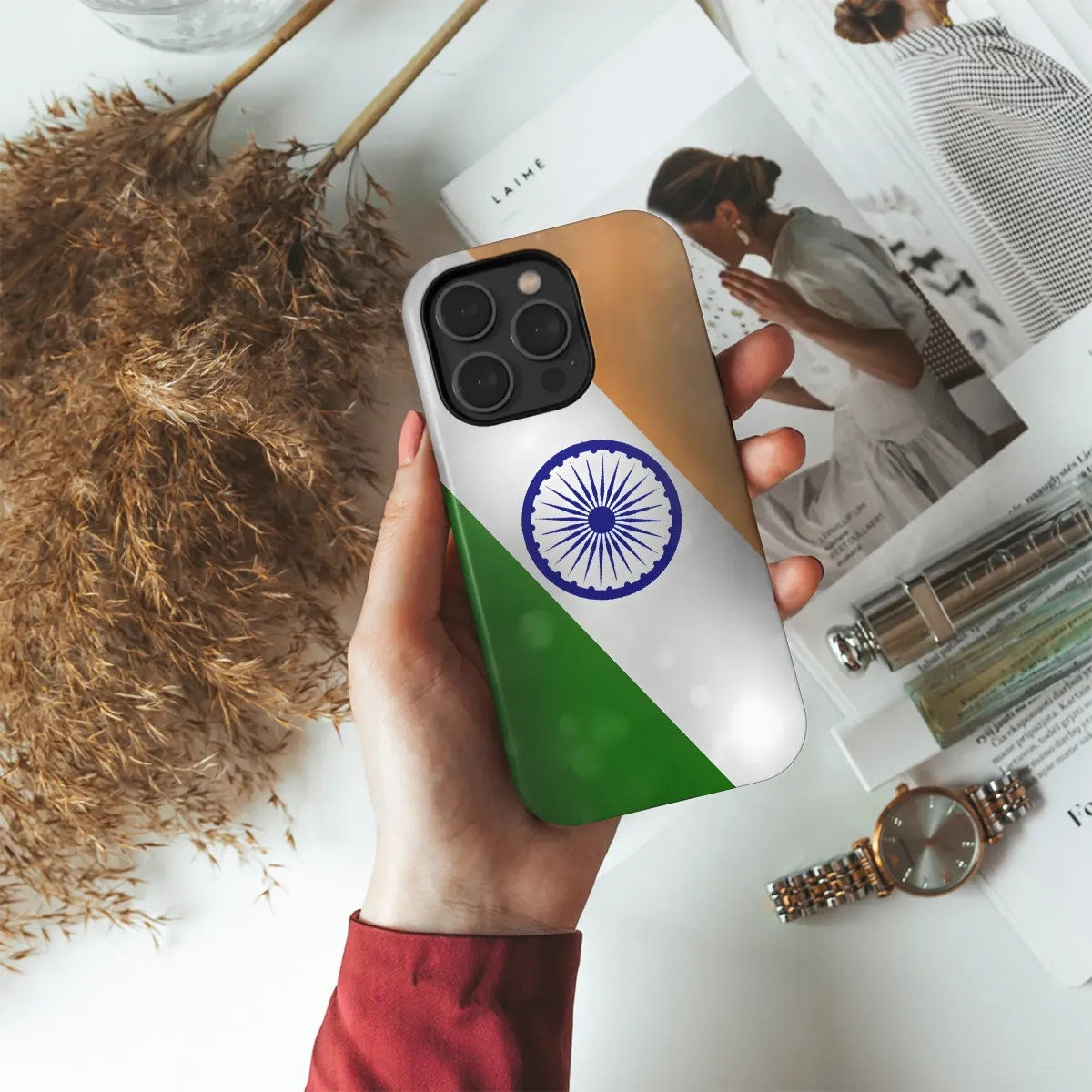 Show your Indian pride with this stunning design, featuring the vibrant colors and iconic Ashoka Chakra of the Indian flag. The soft bokeh effect adds a touch of elegance and sophistication, making this a perfect accessory for those who appreciate artistry and national identity. This high-quality print is durable and vibrant, ensuring your device stays protected in style. Perfect for expressing patriotism, celebrating Independence Day, or simply showcasing your heritage. This design is a beautiful way to personalize your tech and makes a thoughtful gift for friends and family. Its eye-catching design will turn heads wherever you go, sparking conversations and connections. This unique piece is sure to become a treasured possession, combining functionality with a striking display of national pride. The intricate details of the Ashoka Chakra are vividly captured, and the subtle background adds depth and texture. Order yours today and let your device reflect your love for India! #indianflag #indiandesign #patriotism #indiapride #ashokachakra #nationalflag #bokeh #gift #personalized #mobileaccessory #stylish #unique #India #flagdesign