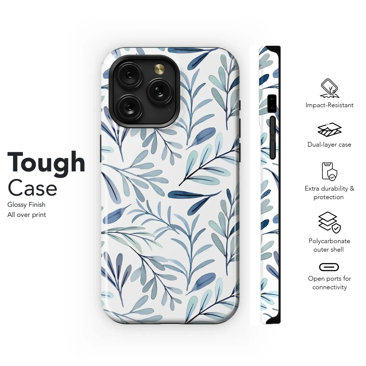 Adorn your everyday carry with this delicate and stylish watercolor leaf pattern. This botanical design features a seamless repeat of hand-painted leaves in soothing shades of blue and teal, creating a calming and sophisticated aesthetic. Perfect for nature lovers, minimalists, or anyone seeking a touch of organic beauty in their tech accessories. The detailed brushstrokes and subtle color variations add depth and visual interest, making this more than just a pattern – it's a wearable piece of art. Protect your device in style with this unique and eye-catching design, ideal for adding a personalized touch to your everyday life. Explore the entire collection for matching accessories and create a cohesive and fashionable look. Elevate your tech style with this elegant floral-inspired design that captures the serenity and grace of nature, a perfect gift for her, him or just for you!