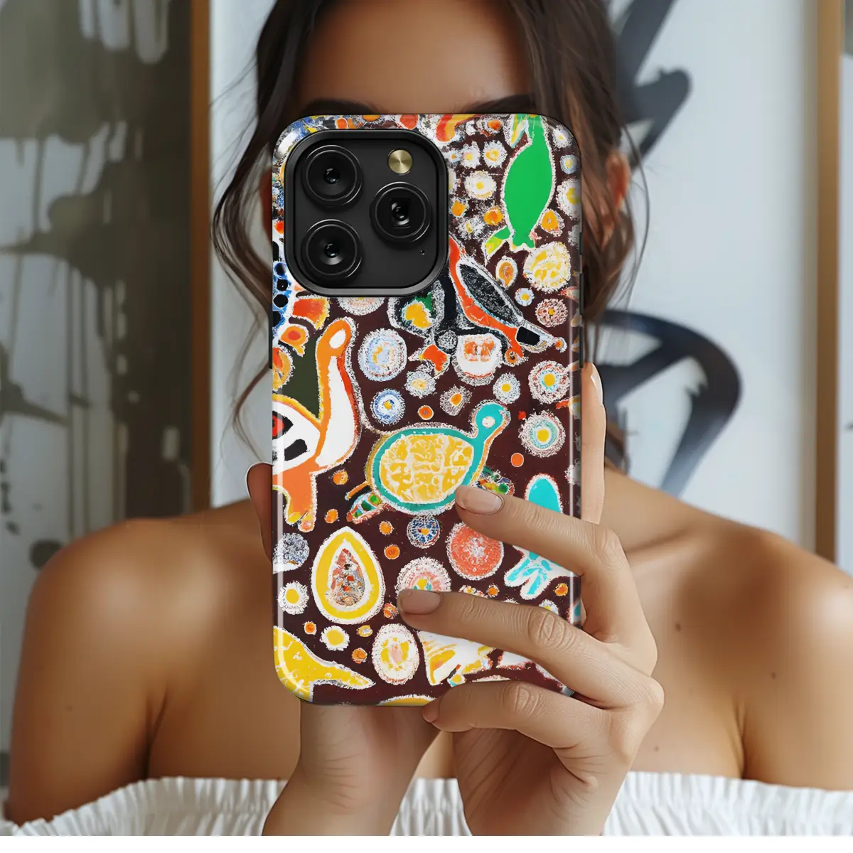 Embrace the vibrant Aboriginal heritage with this captivating phone case. Its intricate painting showcases an array of animals and dots, evoking the ancient art form of the Indigenous people of Australia. Each phone case is a unique piece of art, bringing a touch of cultural richness to your smartphone. Protect your device with style and celebrate the beauty of Aboriginal culture.