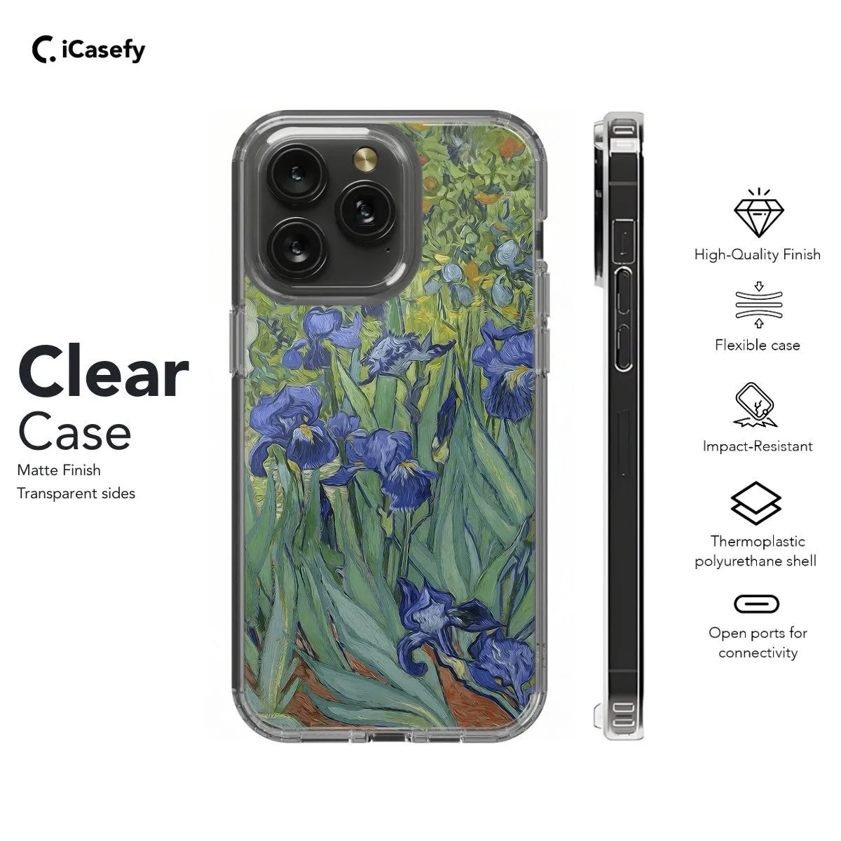 Immerse yourself in the blooming serenity of Vincent van Gogh's Irises with our Phone Case. Inspired by the vibrant hues and swirling brushstrokes of the renowned masterpiece, this case captures the essence of natural beauty and artistic expression. Crafted for both style and protection, it safeguards your phone while adding a touch of artistic flair. With precise cutouts for ports and buttons, it ensures seamless functionality. Carry a piece of van Gogh's brilliance with our Irises Phone Case today!