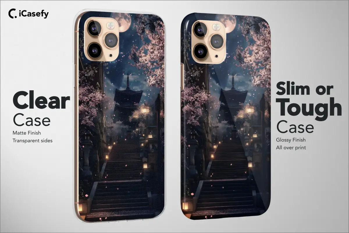 Elevate your style with our stunning new collection of protective covers featuring captivating Japanese-inspired artwork. Choose from four breathtaking designs: a serene moonlit cherry blossom scene (design #1), a picturesque sunset over tranquil mountains (design #2), a charming cherry-blossom-lined street with Mount Fuji in the distance (design #3), or a nostalgic rainy night at a quiet train station (design #4). Each vibrant image is printed with high-quality inks for exceptional clarity and long-lasting beauty, ensuring your device remains protected while showcasing your unique taste. Simply select your preferred design number during checkout to personalize your new accessory. These artistic covers offer a perfect blend of style and functionality, transforming your device into a wearable piece of art. Perfect for adding a touch of serenity and elegance to your daily life, these designs are an ideal gift for yourself or someone special who appreciates beautiful art and quality craftsmanship. Express your individuality and make a statement with these exquisite and durable protective covers.