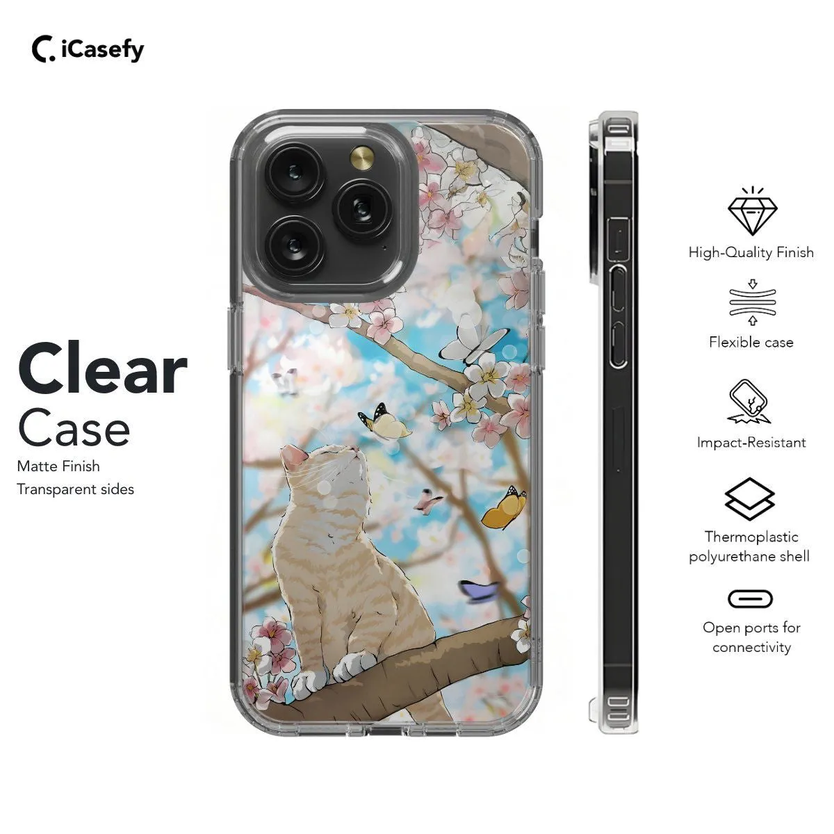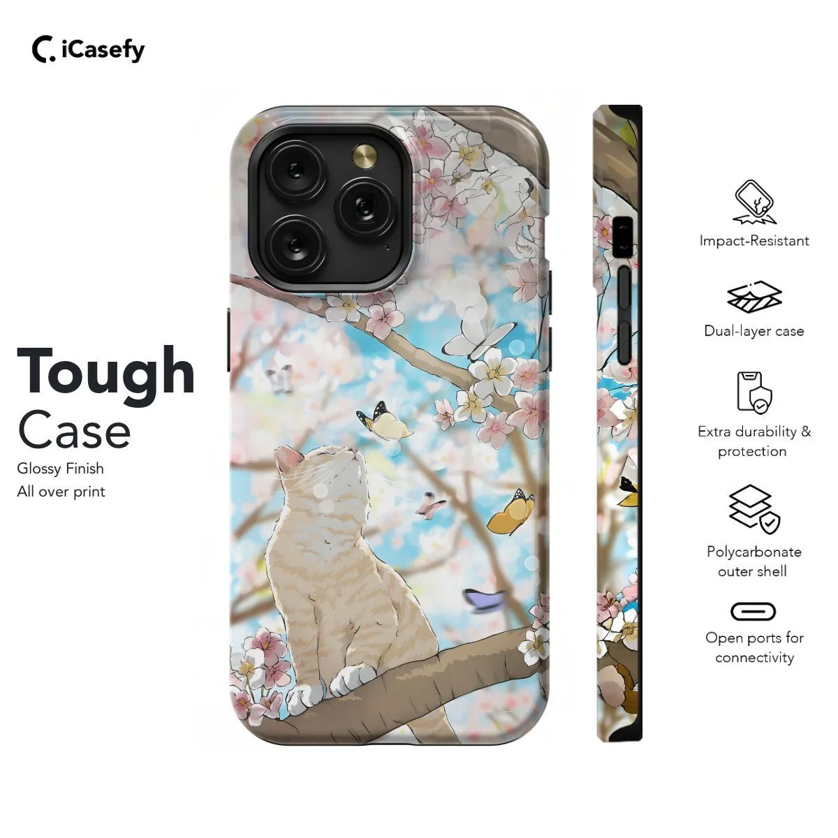 Introducing our Japanese Cat Butterfly Blossom phone case, featuring a delightful fusion of traditional Japanese elements. With a charming cat, fluttering butterflies, and blossoming flowers, this case exudes elegance and whimsy. Embrace the beauty of Japanese culture while protecting your device with style.