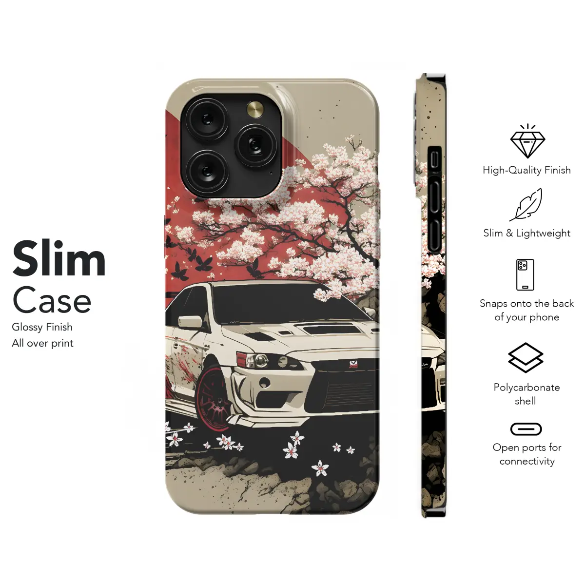 Experience the vibrant beauty of Japanese cherry blossoms with our exclusive Mitsubishi Lancer EVO phone case. Specifically designed for iPhone, Samsung, and Pixel 2046 models, this case offers both style and protection. Its durable construction safeguards your device from everyday wear and tear, while the stunning cherry blossom design adds a touch of springtime enchantment. Immerse yourself in the elegance of ancient Japan every time you use your phone.