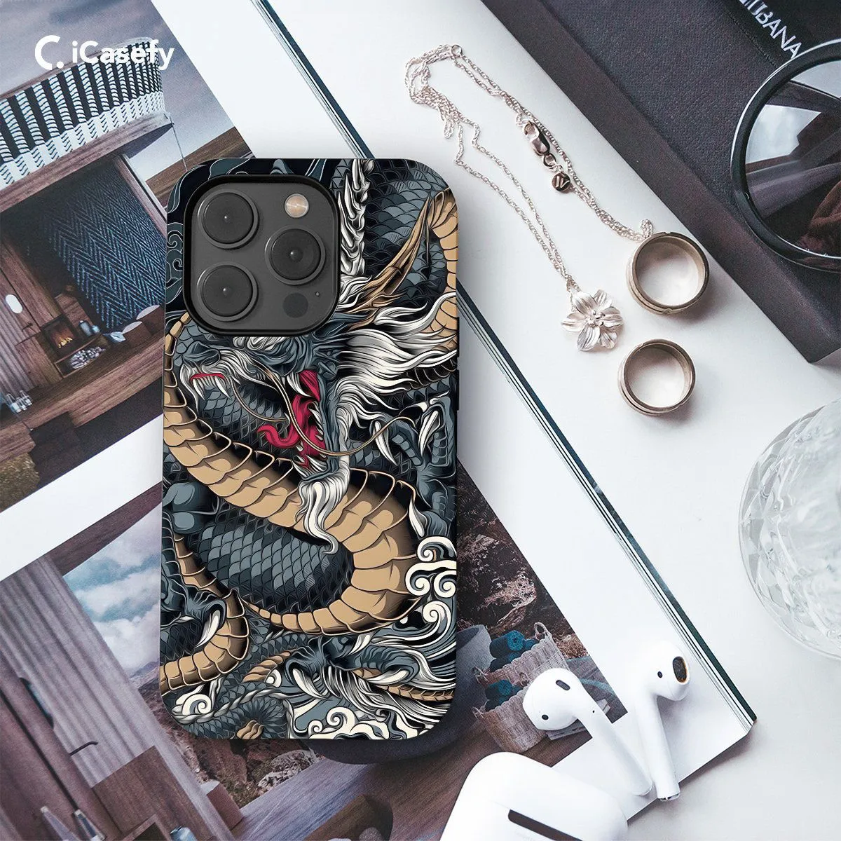 Immerse yourself in the legendary world of Japanese folklore with this striking phone case featuring a majestic dragon. Symbolizing strength, wisdom, and protection, the Japanese dragon is a revered creature in mythology. Carry the spirit of ancient legends with you wherever you go and let your device become a canvas for the awe-inspiring power and beauty of the dragon with this captivating accessory.