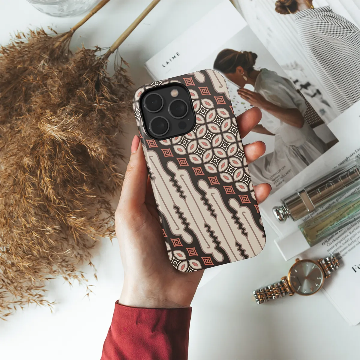 Protect your phone with style and grace with our Javanese Batik phone case. This exquisite cover features intricate and vibrant patterns inspired by the ancient art of Javanese Batik. Its durable construction ensures your phone stays safe from scratches, dents, and everyday wear and tear. Available for iPhone, Samsung, and Pixel, this case effortlessly complements any outfit and celebrates the beauty of Indonesian heritage.
