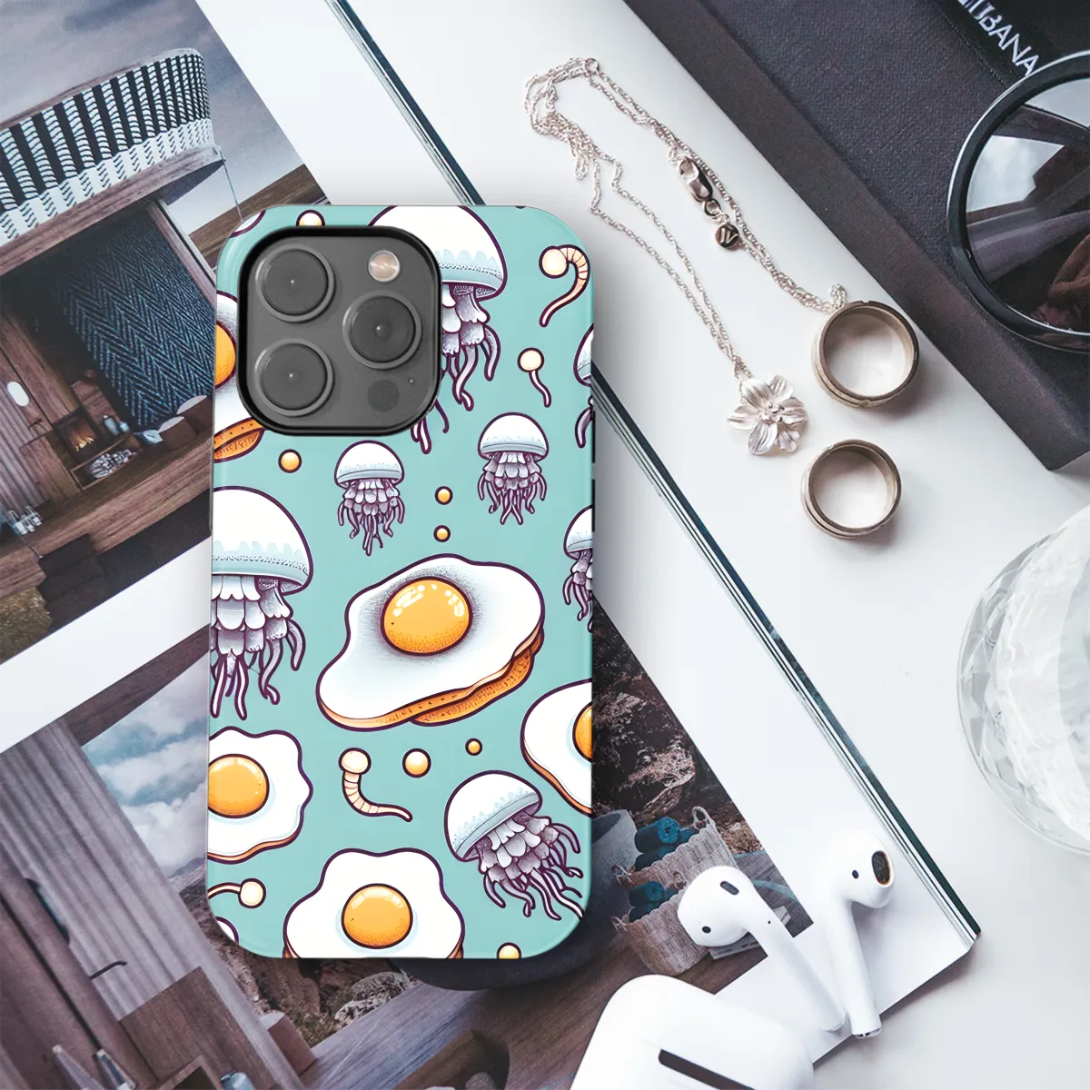 Get ready to make a splash with our Jellyfish and Fried Eggs phone case! This quirky and eye-catching design features a vibrant underwater scene, with ethereal jellyfish and sunny-side-up eggs floating in a surreal sea. Whether you're an ocean enthusiast or simply love a touch of the unexpected, this case is the perfect way to add a dash of whimsy to your smartphone. Its durable construction protects your device from bumps and scratches, while its vibrant colors and whimsical design are sure to turn heads. Order now and let this jellyfish and fried eggs case transport you to a world of underwater wonder!