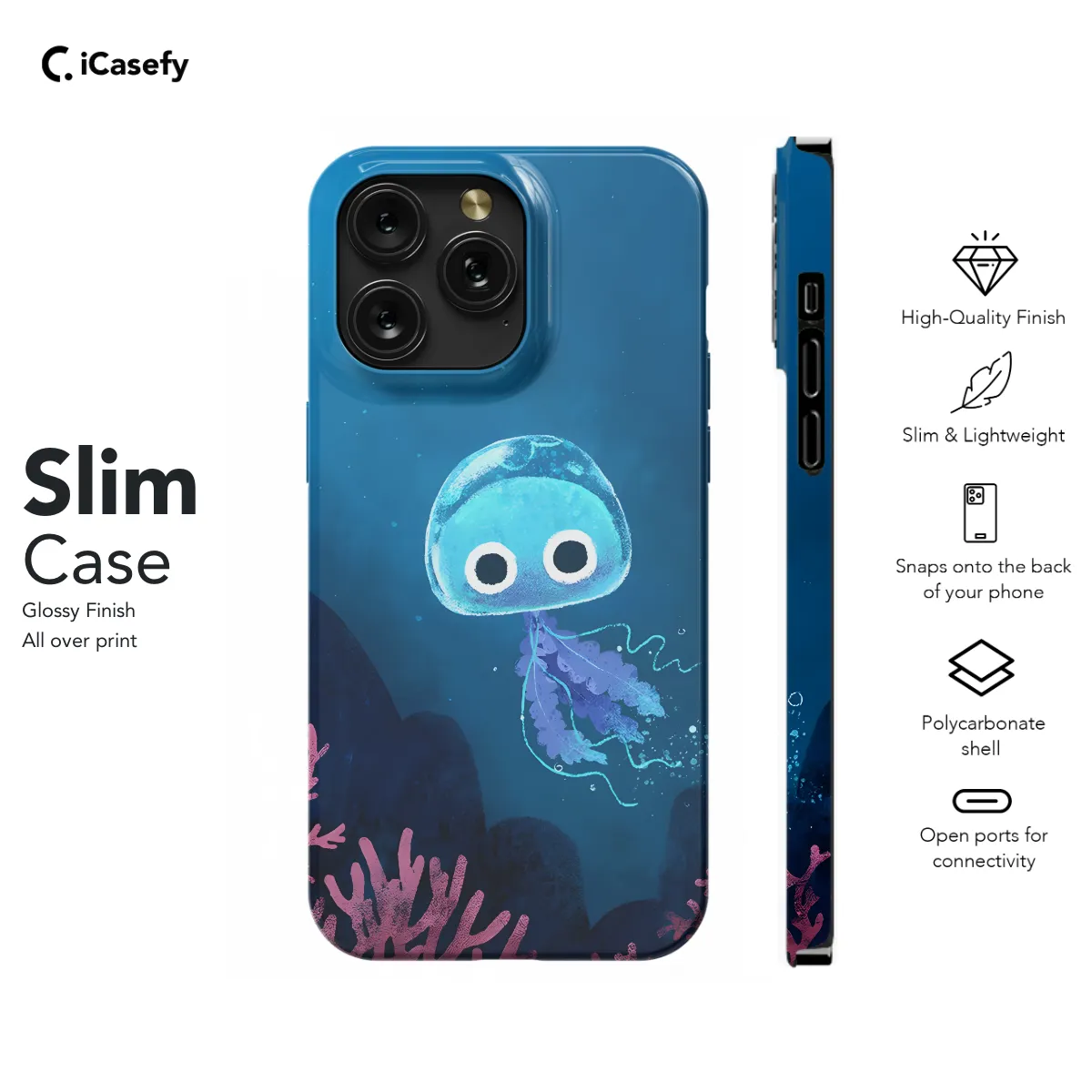 Immerse yourself in the ethereal beauty of the deep with our Jellyfish Phone Case. This captivating cover protects your iPhone, Samsung, or Pixel device with a mesmerizing design inspired by the hypnotic movements of jellyfish. Its sleek profile and durable material safeguard your phone from scratches and impacts, while its translucent finish allows the intricate jellyfish pattern to shimmer and dance before your eyes. Whether you're a nature enthusiast or simply appreciate the allure of the ocean, this phone case will add a touch of wonder to your everyday life.