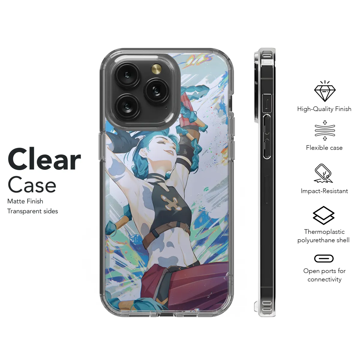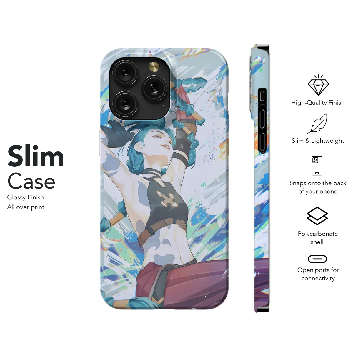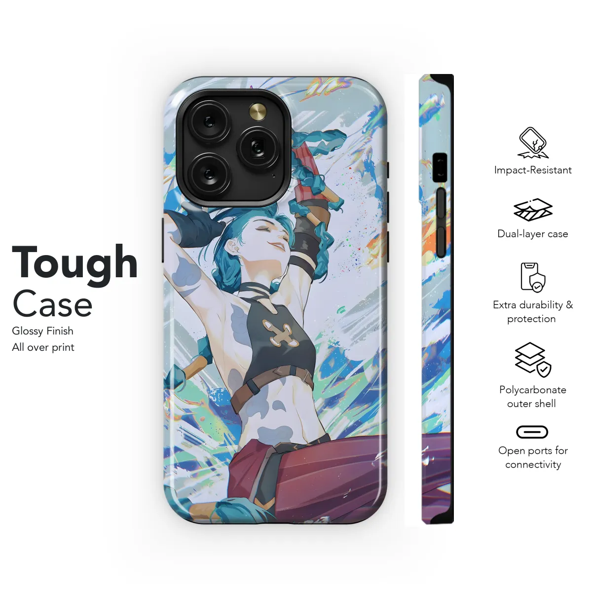 Dive into the mystical world of League of Legends with our exclusive Jinx Arcane Splash Art Phone Case. This vibrant case showcases Jinx in all her chaotic glory, with her signature pink hair and lightning-fast grin. Protect your phone from the elements while adding a touch of Arcane style to your device. The durable material and high-quality print ensure the design remains vibrant and eye-catching. Whether you're a hardcore Jinx fan or simply appreciate the captivating artwork, this case is the perfect way to show off your love for the League of Legends universe.