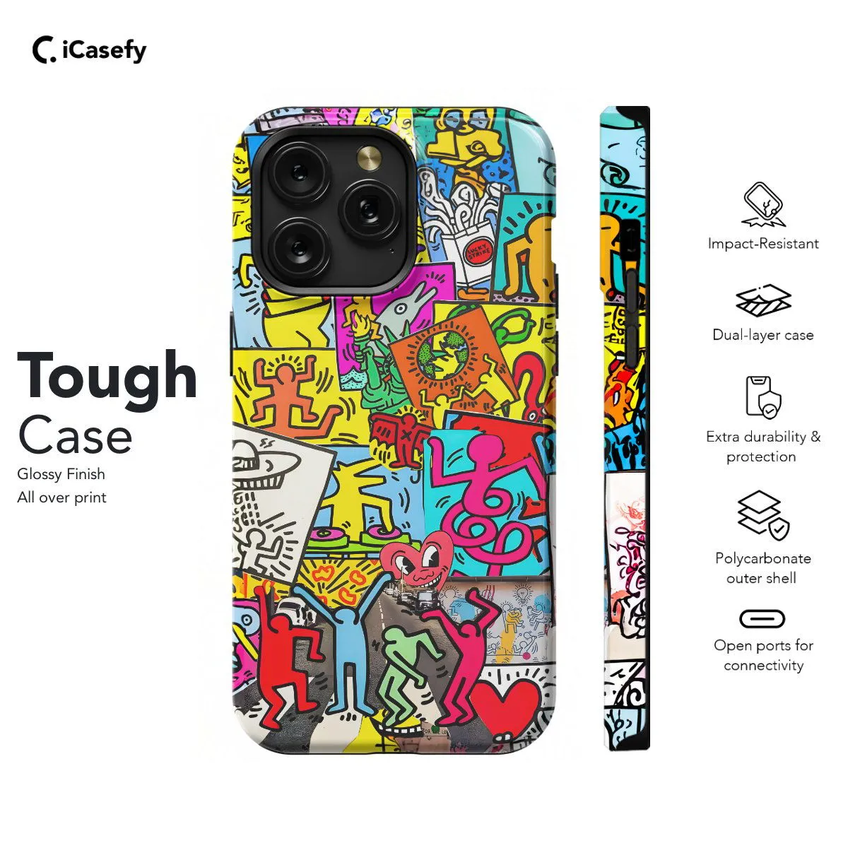 Introducing our Keith Haring Art phone case, showcasing the iconic artwork of the legendary artist. Available in Clear, Slim snap-on, and Tough case finishes, each option offers reliable protection while allowing the vibrant colors and bold lines of Haring's art to shine through. Protect your device in style with this unique and eye-catching case, perfect for art enthusiasts and fans of Keith Haring's work.