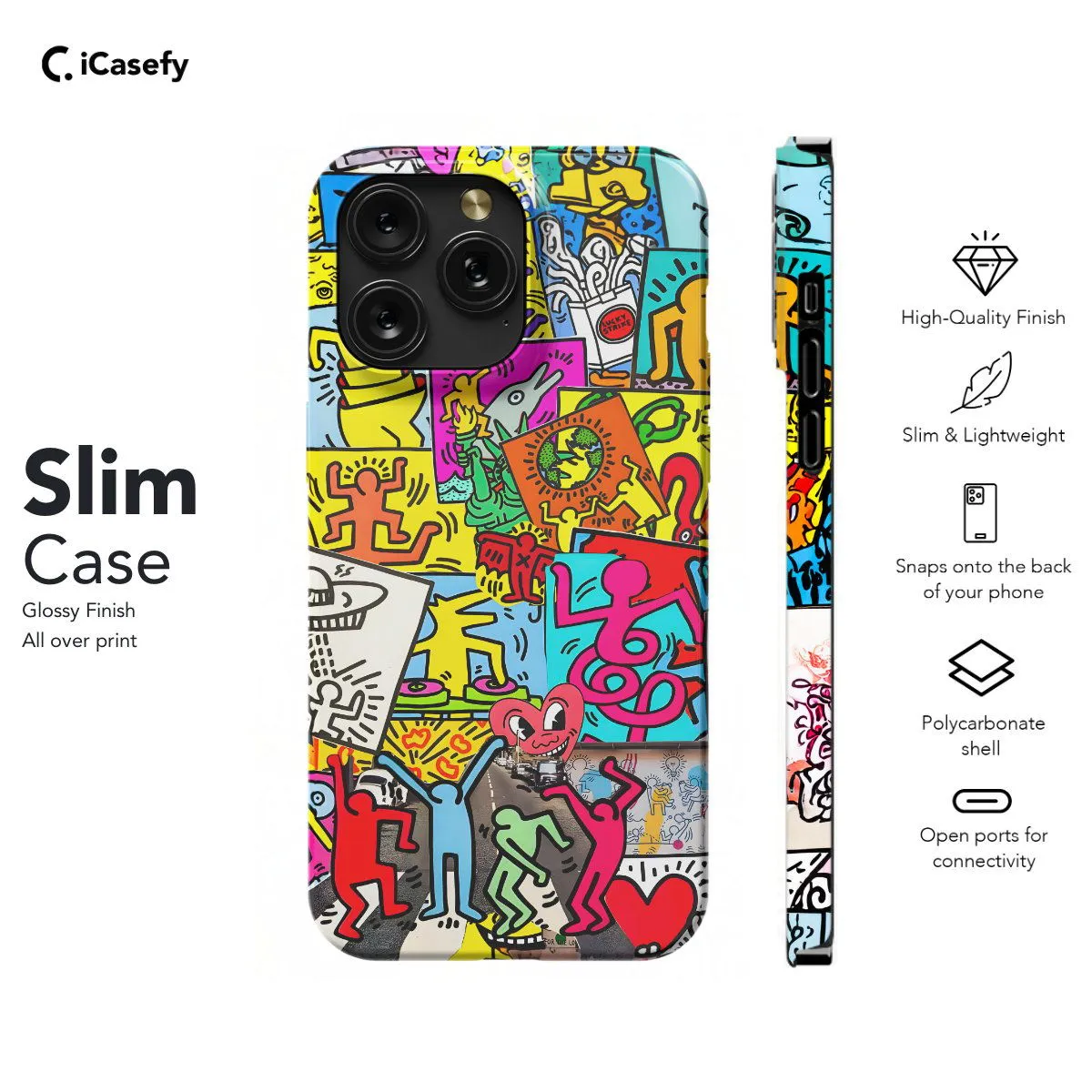 Introducing our Keith Haring Art phone case, showcasing the iconic artwork of the legendary artist. Available in Clear, Slim snap-on, and Tough case finishes, each option offers reliable protection while allowing the vibrant colors and bold lines of Haring's art to shine through. Protect your device in style with this unique and eye-catching case, perfect for art enthusiasts and fans of Keith Haring's work.