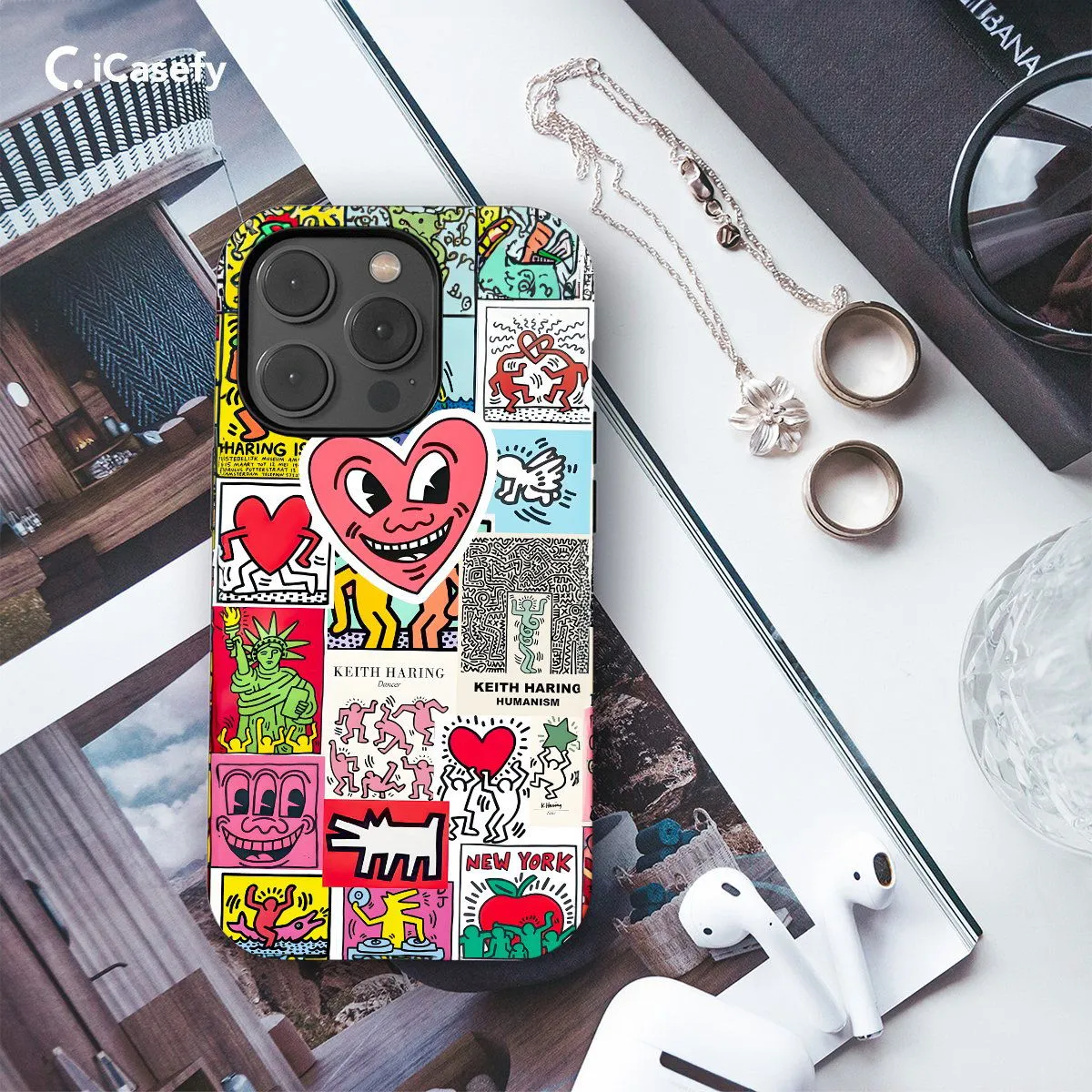 Introducing our Keith Haring Art phone case, showcasing the iconic artwork of the legendary artist. Available in Clear, Slim snap-on, and Tough case finishes, each option offers reliable protection while allowing the vibrant colors and bold lines of Haring's art to shine through. Protect your device in style with this unique and eye-catching case, perfect for art enthusiasts and fans of Keith Haring's work.