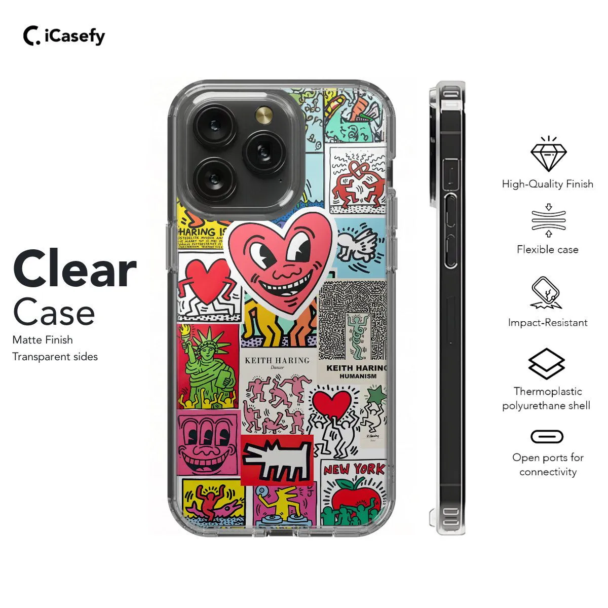 Introducing our Keith Haring Art phone case, showcasing the iconic artwork of the legendary artist. Available in Clear, Slim snap-on, and Tough case finishes, each option offers reliable protection while allowing the vibrant colors and bold lines of Haring's art to shine through. Protect your device in style with this unique and eye-catching case, perfect for art enthusiasts and fans of Keith Haring's work.