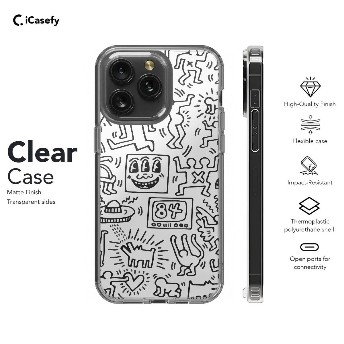 Express your love for iconic art with this captivating Keith Haring-inspired phone case. Featuring bold lines, vibrant colors, and dynamic figures reminiscent of Haring's distinctive style, this case is a striking homage to the legendary artist. Carry a piece of art history with you wherever you go and let your device become a canvas for Haring's timeless message of love, unity, and activism.