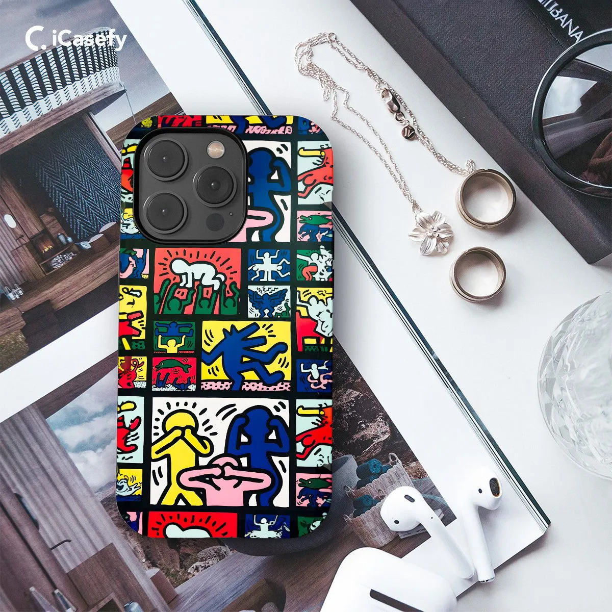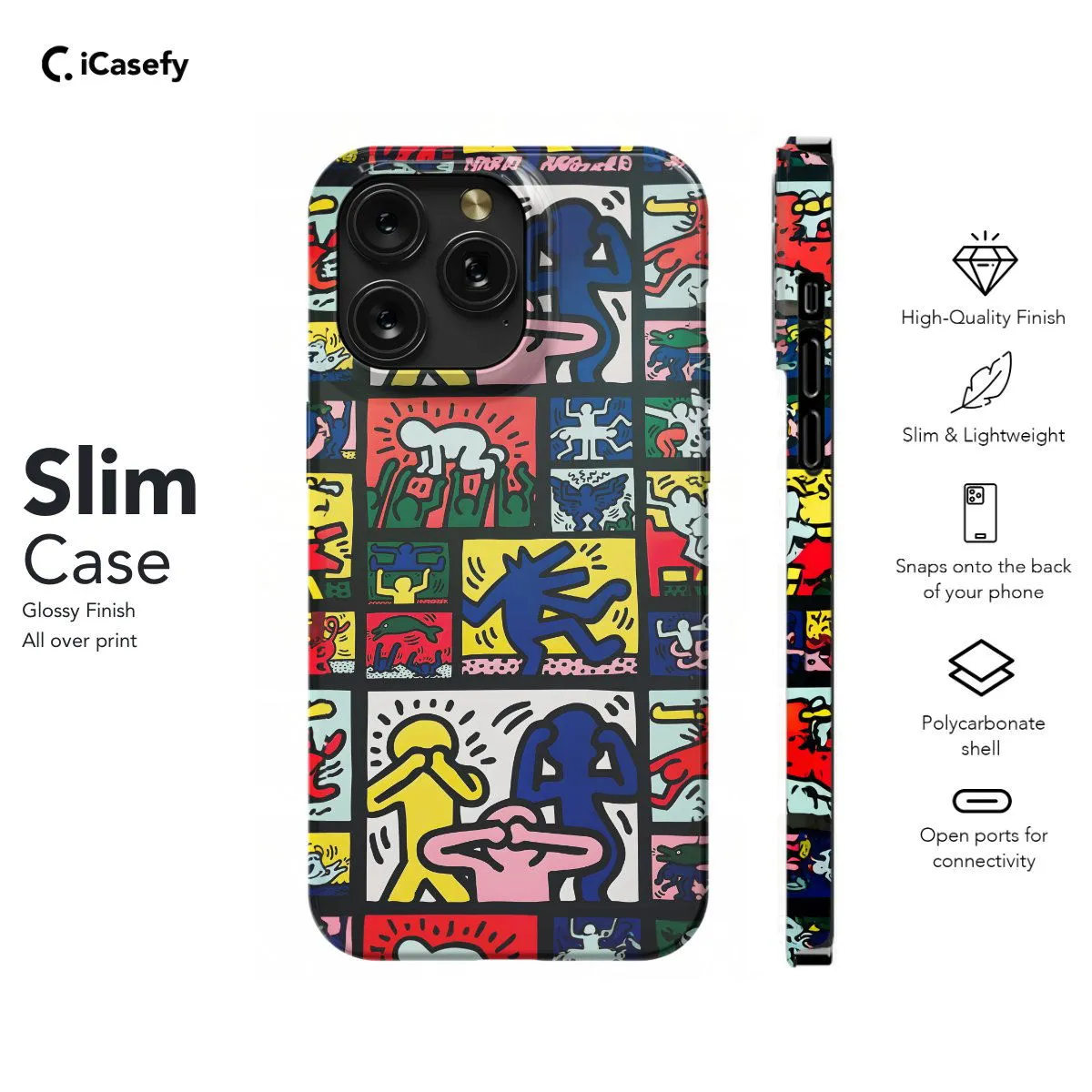 Celebrate the iconic art of Keith Haring with this vibrant phone case featuring his distinctive artwork. Adorned with Haring's signature bold lines and colorful figures, this accessory captures the energy and spirit of his renowned pieces. Carry a touch of artistic inspiration with you wherever you go, letting your device become a canvas for Haring's creativity and activism with this eye-catching and dynamic case.