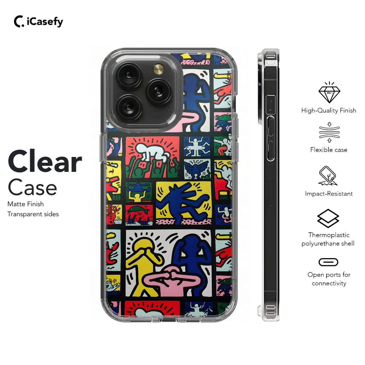 Celebrate the iconic art of Keith Haring with this vibrant phone case featuring his distinctive artwork. Adorned with Haring's signature bold lines and colorful figures, this accessory captures the energy and spirit of his renowned pieces. Carry a touch of artistic inspiration with you wherever you go, letting your device become a canvas for Haring's creativity and activism with this eye-catching and dynamic case.