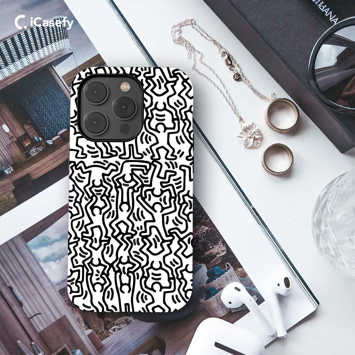 Celebrate the vibrant and iconic art of Keith Haring with this captivating phone case featuring his distinctive artwork. Adorned with bold lines and colorful figures, this accessory captures the energy and spirit of Haring's renowned pieces. Carry a touch of artistic inspiration with you wherever you go, letting your device become a canvas for Haring's creativity and activism with this eye-catching and dynamic case.