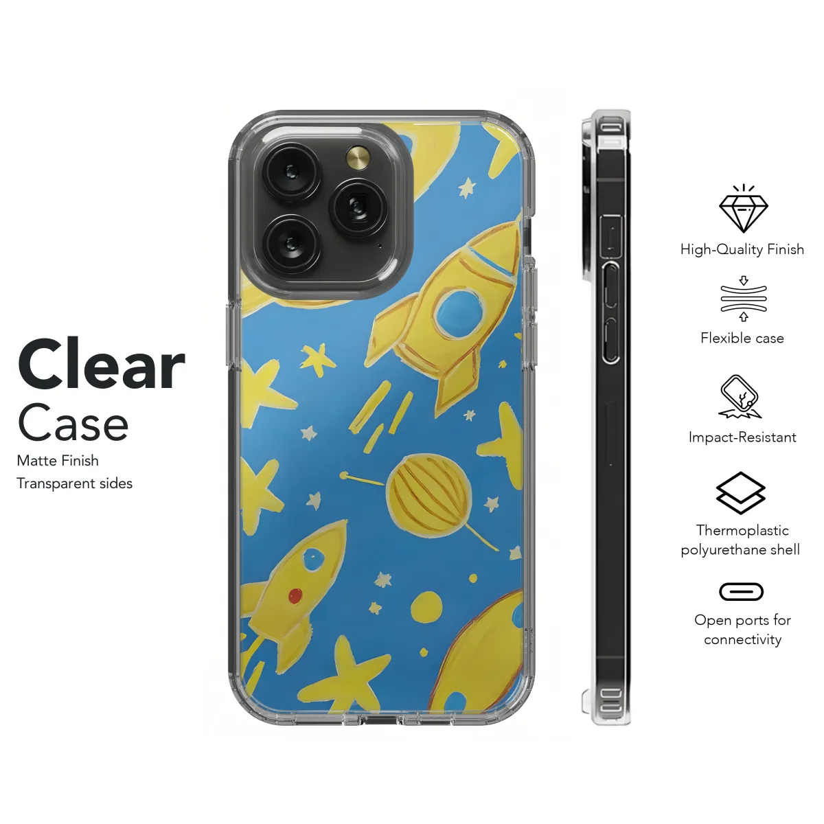 Introducing the Kid's Space Phone Case – the perfect way to protect your child's phone while letting them explore their imagination. This case is made from durable silicone that can withstand drops and bumps, and it features a fun space-themed design that kids will love. The Kid's Space Phone Case is also designed to be easy for kids to use. The large buttons are easy to press, and the case has a built-in screen protector that helps keep the screen safe from scratches. With the Kid's Space Phone Case, you can rest assured that your child's phone is protected while they're having fun.