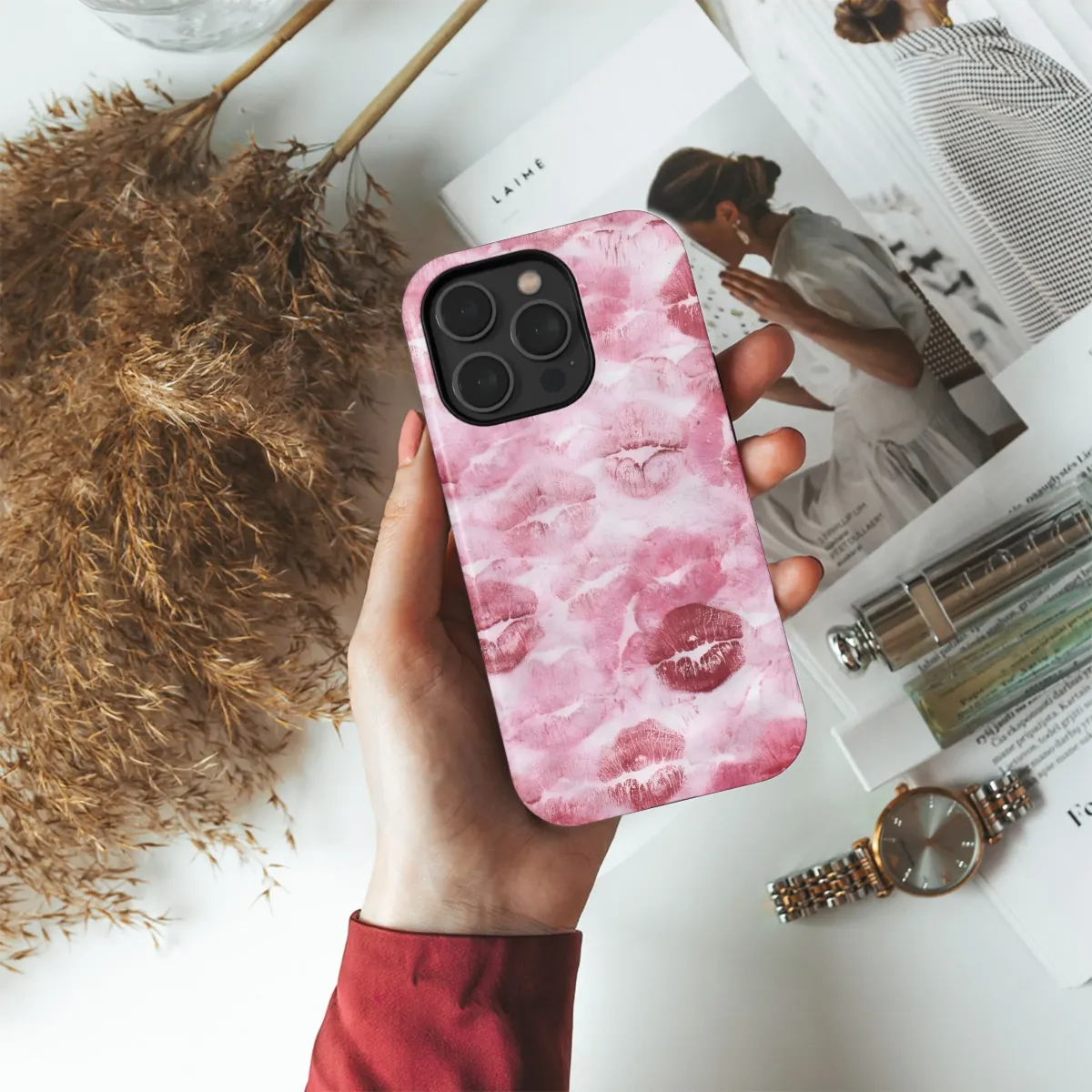 Show your phone some love with the Kiss Marks Romance Case. This stylish cover protects your iPhone, Samsung, or Pixel while adding a touch of romantic flair. Get yours today!