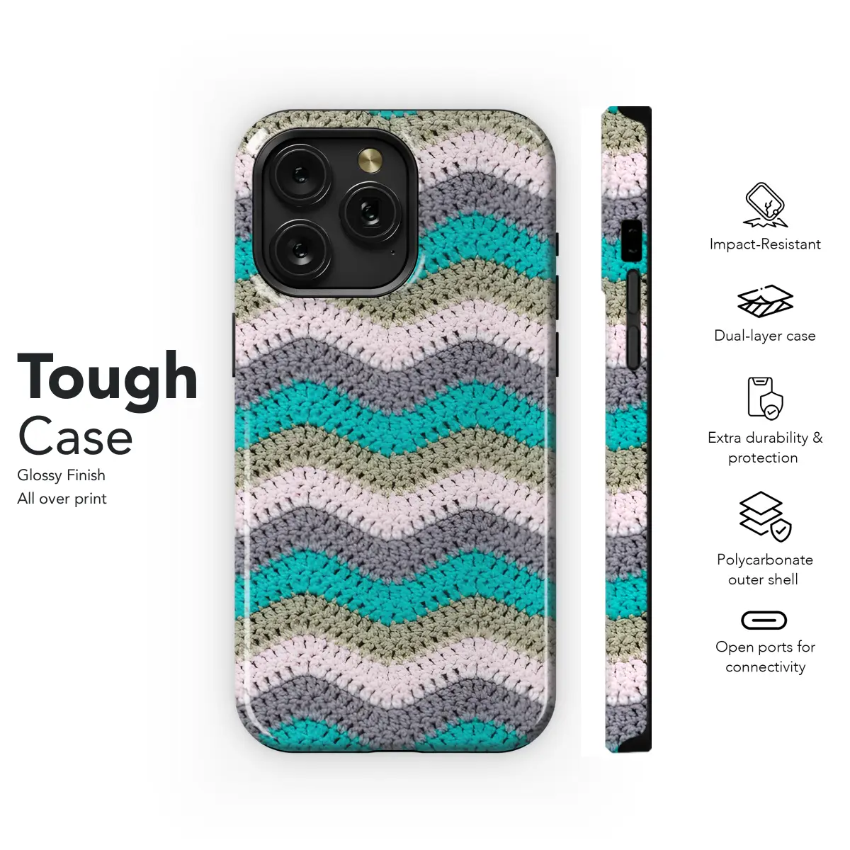 Cozy up your phone with our unique Knitted Zigzag Case! Crafted from premium yarn, its vibrant pastel hues create a playful and stylish statement. The soft, textured exterior provides a secure grip, while the form-fitting design ensures a snug fit for your iPhone, Samsung, or Pixel device. Protect your phone in a cozy and chic way with our Knitted Zigzag Case.