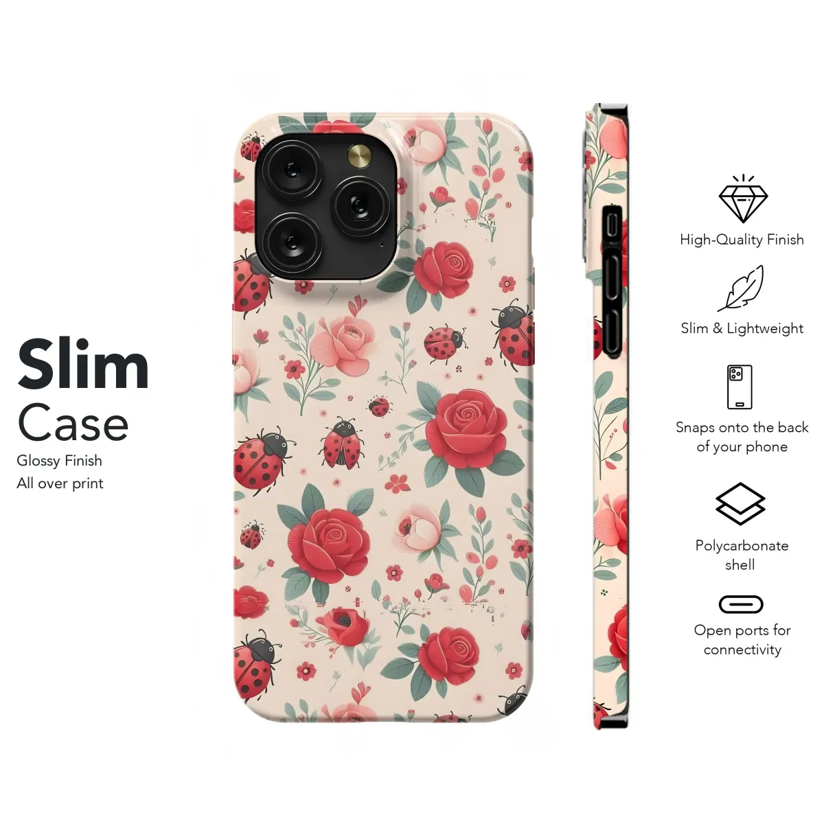 Adorn your device with this enchanting floral design! A delightful pattern featuring vibrant red roses interspersed with charming ladybugs, all set against a soft, creamy backdrop. This elegant yet playful design is perfect for adding a touch of nature-inspired beauty to your everyday tech. The detailed illustrations bring a whimsical feel, while the classic rose motif offers timeless appeal. Ideal for those who love botanical prints, garden themes, or simply appreciate a splash of color and joy. Protect your gadget in style with this unique and eye-catching artwork. Perfect gift for her, flower lovers, nature enthusiasts, Valentine's day and more! Roses and Ladybugs illustration printed. Get yours today!