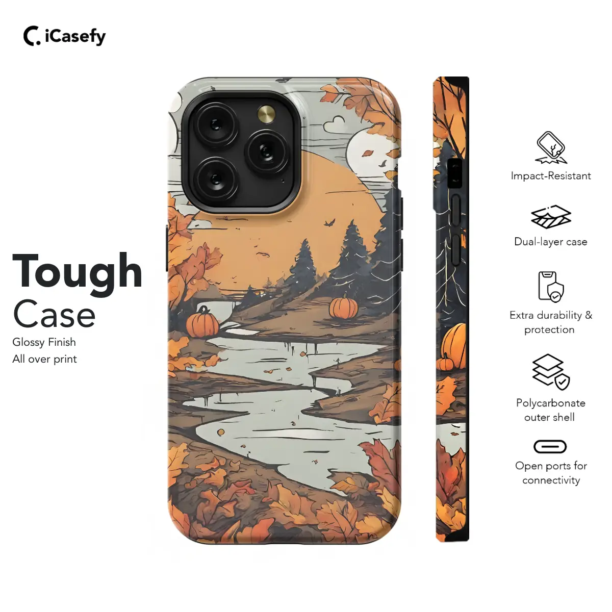 Escape into the tranquil embrace of nature with our captivating Landscape River Forest Autumn Nature Pumpkin Phone Case. This exquisite cover transforms your device into a canvas of vibrant hues, capturing the essence of an idyllic autumn day. Imagine vibrant foliage painting the landscape with fiery reds, golden yellows, and deep oranges. A babbling river gently meanders through the serene forest, reflecting the ethereal glow of the setting sun. A plump pumpkin, a symbol of autumn's bounty, rests amidst the scene, evoking a sense of cozy comfort. Our case is crafted with precision for your iPhone, Samsung, or Pixel device, ensuring a perfect fit. Its durable construction protects your phone from everyday hazards while showcasing the stunning artwork. Embrace the beauty of nature and elevate your style with our Landscape River Forest Autumn Nature Pumpkin Phone Case.
