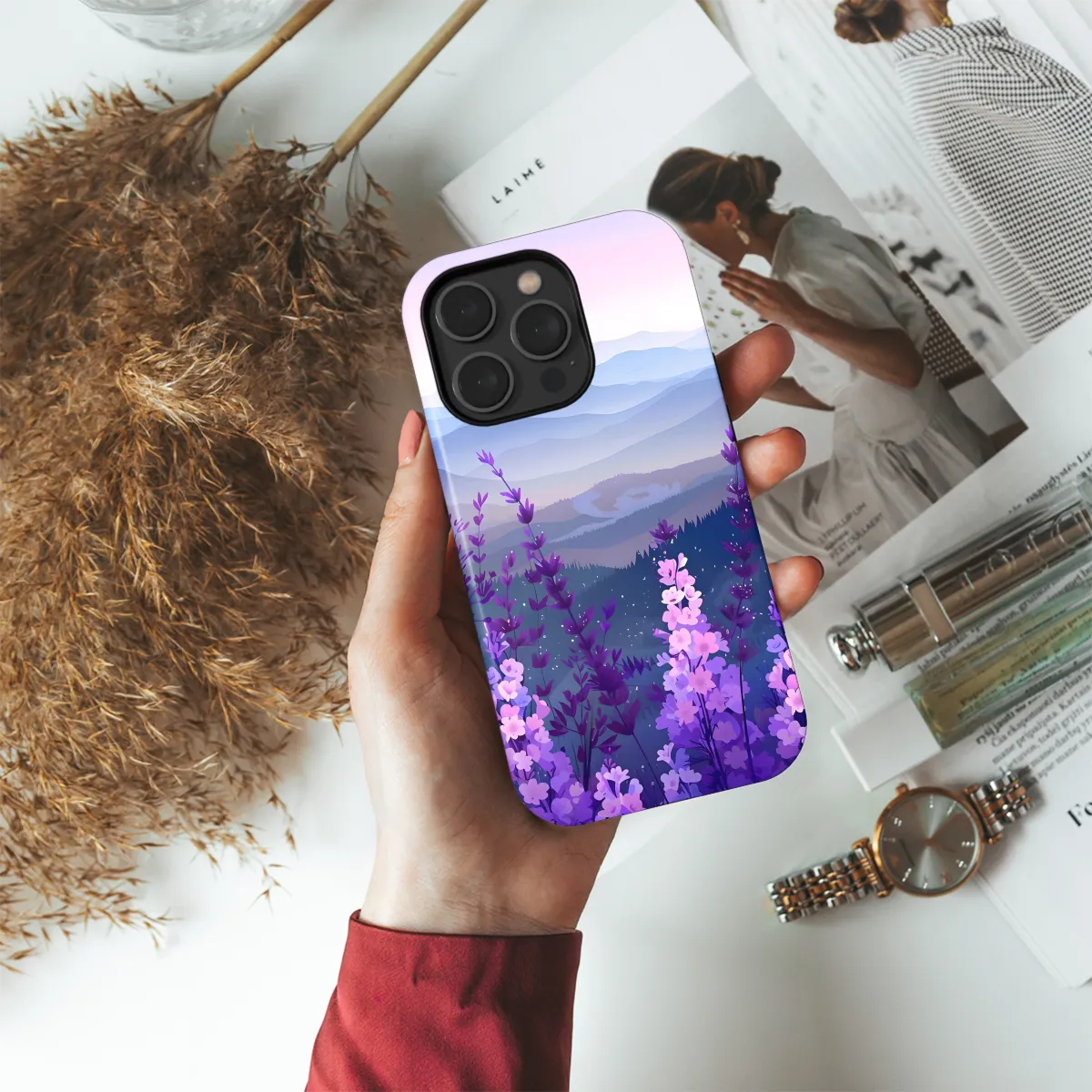 Indulge in serene landscapes with our Lavanda Landscape Phone Case. Its vibrant floral design transforms your device into a picturesque work of art. The precision-cut cover ensures a perfect fit, while the durable materials protect your phone from bumps and scratches. Escape into the tranquility of lavender fields with every glance at your phone.