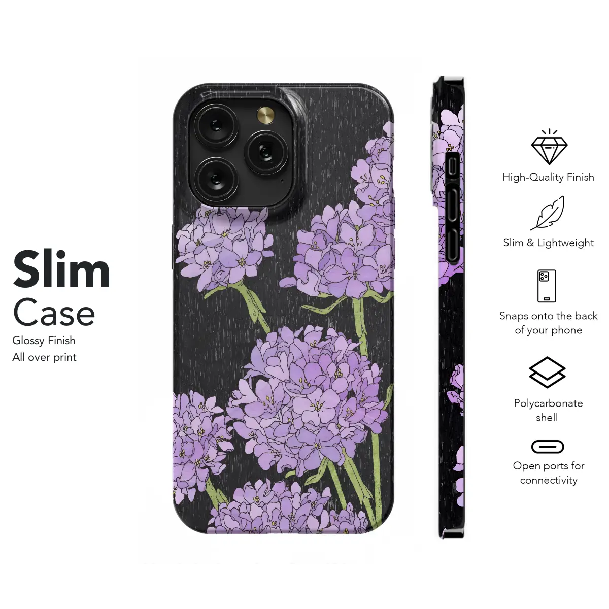 Embrace the allure of the night with our Lavender Blooms Dark Night Phone Case. Inspired by the ethereal beauty of lavender fields under a starlit sky, this enchanting case transforms your phone into a captivating accessory. The soft, velvety texture of the lavender blooms invites soothing touches, while the rich dark blue background evokes a sense of mystery and wonder. Each intricate petal is meticulously crafted to create a mesmerizing pattern that will captivate all who behold it. This durable case provides essential protection against scratches, bumps, and everyday wear and tear. Its form-fitting design ensures a snug and secure grip, while the precise cutouts offer easy access to all ports and buttons. Moonlight blooming, lavender's calm, Beneath dark skies, a soothing balm. Our case invites tranquility's embrace, With lavender blooms in starry space.