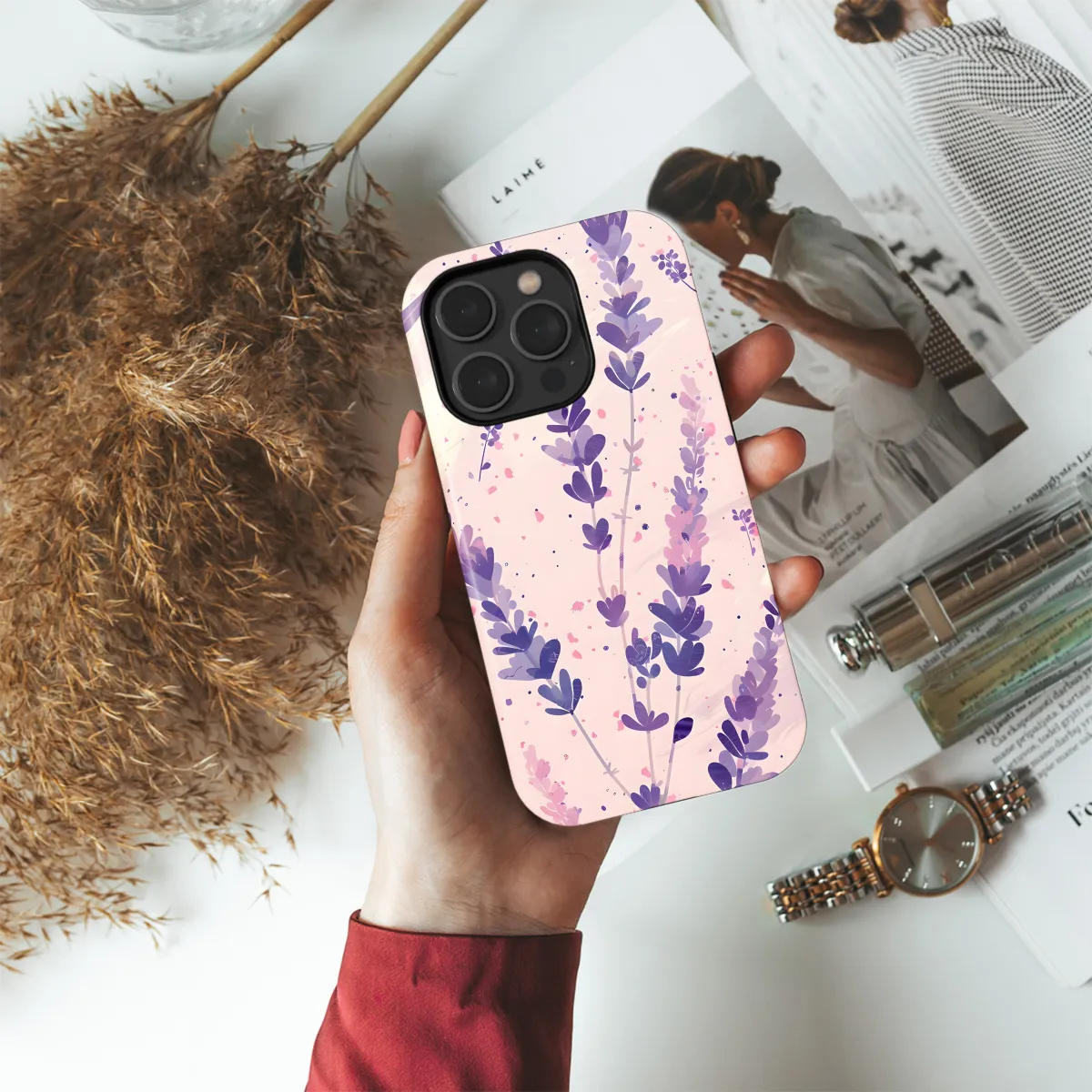 Immerse yourself in the tranquility of a lavender field with our dreamy phone case. Shimmering in shades of purple and blooming with intricate floral designs, this case will transform your device into a timeless work of art. Soft to the touch and meticulously crafted, it offers exceptional protection while transporting you to a fragrant garden paradise.