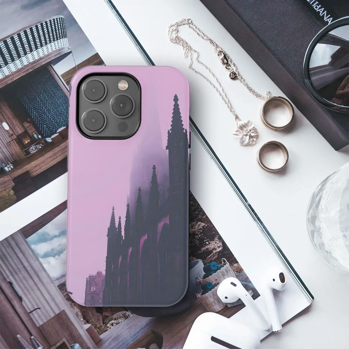 Embrace the mystique of a gothic dreamscape with this captivating design. The image, a mesmerizing blend of deep purples and shadowy architecture, evokes a sense of ethereal beauty and timeless mystery. Perfect for those who appreciate the dramatic and the darkly romantic, this design transforms any device into a statement piece, reflecting an individualistic style that whispers tales of hidden worlds and forgotten stories. The rich, saturated colors are digitally enhanced for vibrant, long-lasting print quality, ensuring your design remains breathtaking for years to come. This unique artwork is expertly printed using eco-friendly inks onto a durable, high-quality substrate, guaranteeing a comfortable fit and superior protection. Showcase your passion for the unusual and the exquisite with this design—a tribute to gothic grandeur and a reflection of your distinctive personality. This design is guaranteed to add a touch of sophisticated edge to your everyday life. Secure yours today and let your device speak volumes about your exquisite taste.