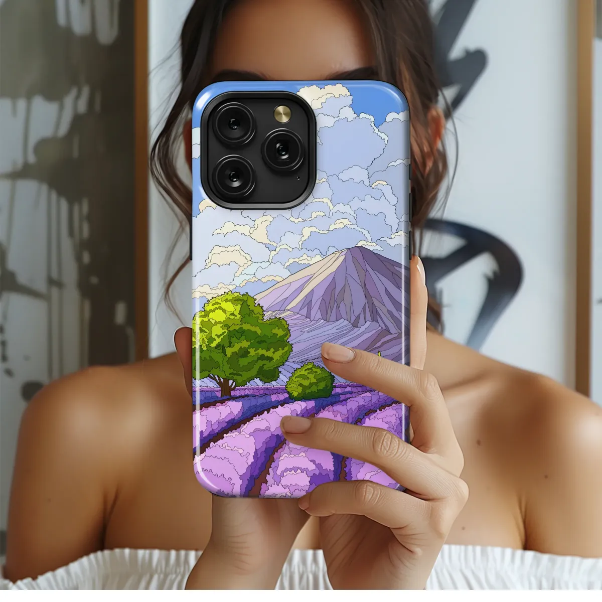 Elevate your style with this stunning lavender field design. Featuring a vibrant purple landscape against a backdrop of fluffy clouds and a majestic mountain, this artwork captures the serene beauty of nature. The intricate details and rich colors create a captivating visual that's both calming and sophisticated. This eye-catching design is perfect for adding a touch of tranquility and elegance to your personal accessory, making it a unique and memorable statement piece. The high-quality print ensures vibrant colors that won't fade, and the durable material provides long-lasting protection. Transform your everyday carry into a work of art with this nature-inspired design. This beautiful piece is ideal as a gift for nature lovers, art enthusiasts, or anyone seeking a touch of serenity. Express your individuality with this artistic, high-quality, and uniquely designed product. Add a touch of Provence to your life, showcasing this breathtaking landscape wherever you go. It's more than just a design; it's a captivating scene you can carry with you. Search terms: Lavender, purple, mountain, clouds, nature, landscape, field, floral, artistic, serene, elegant, Provence, art, design, gift.