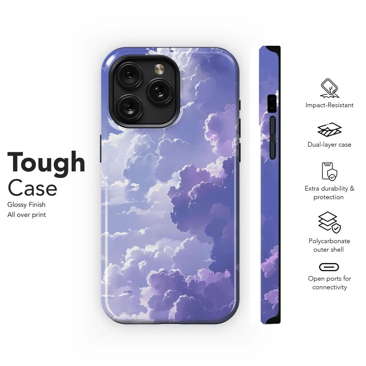 Escape into a tranquil lavender sky with this mesmerizing phone case. The ethereal print captures the delicate hues and soft textures of a twilight dream, transporting you to a realm of serene beauty. Crafted with precision, this case not only shields your phone from harm but also transforms it into a canvas for artistic expression. Let the lavender sky inspire your imagination and ignite your inner artist.