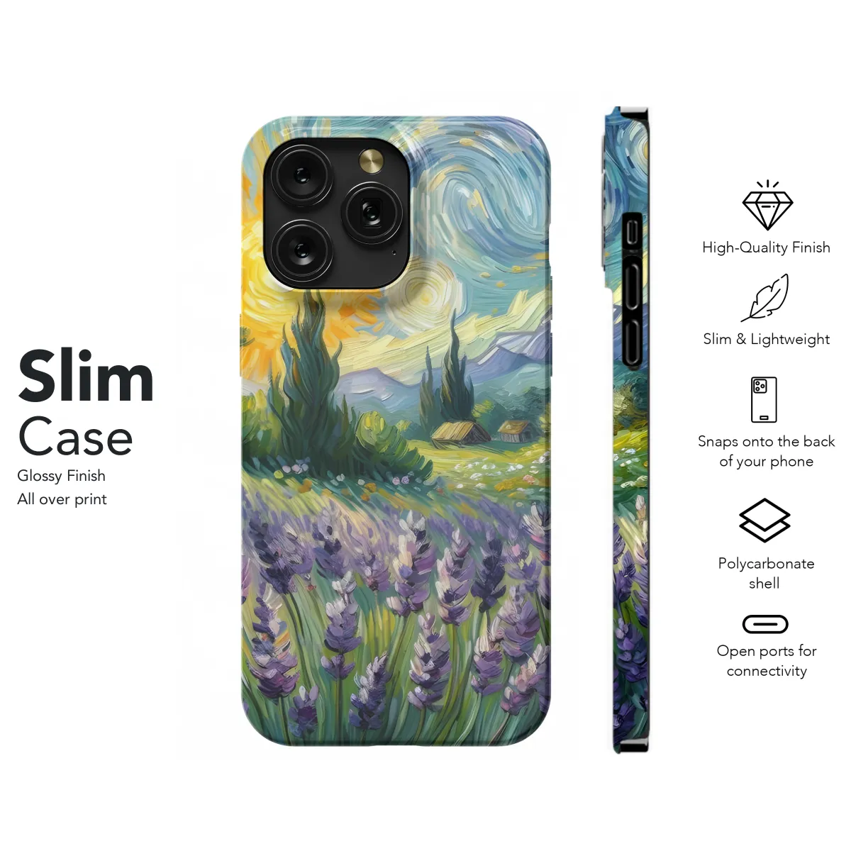 Immerse yourself in the ethereal beauty of the Lavender Sunset Dreamscape phone case. This exquisite cover transports you to a serene meadow where delicate lavender blooms cast an enchanting glow against the vibrant hues of a setting sun. Its captivating design evokes a sense of tranquility and wonder, inviting you to escape into a realm of serenity. The durable material and precise fit protect your phone from everyday wear and tear, ensuring your device remains as radiant as the lavender fields. Embrace the allure of nature and elevate your style with the Lavender Sunset Dreamscape phone case.
