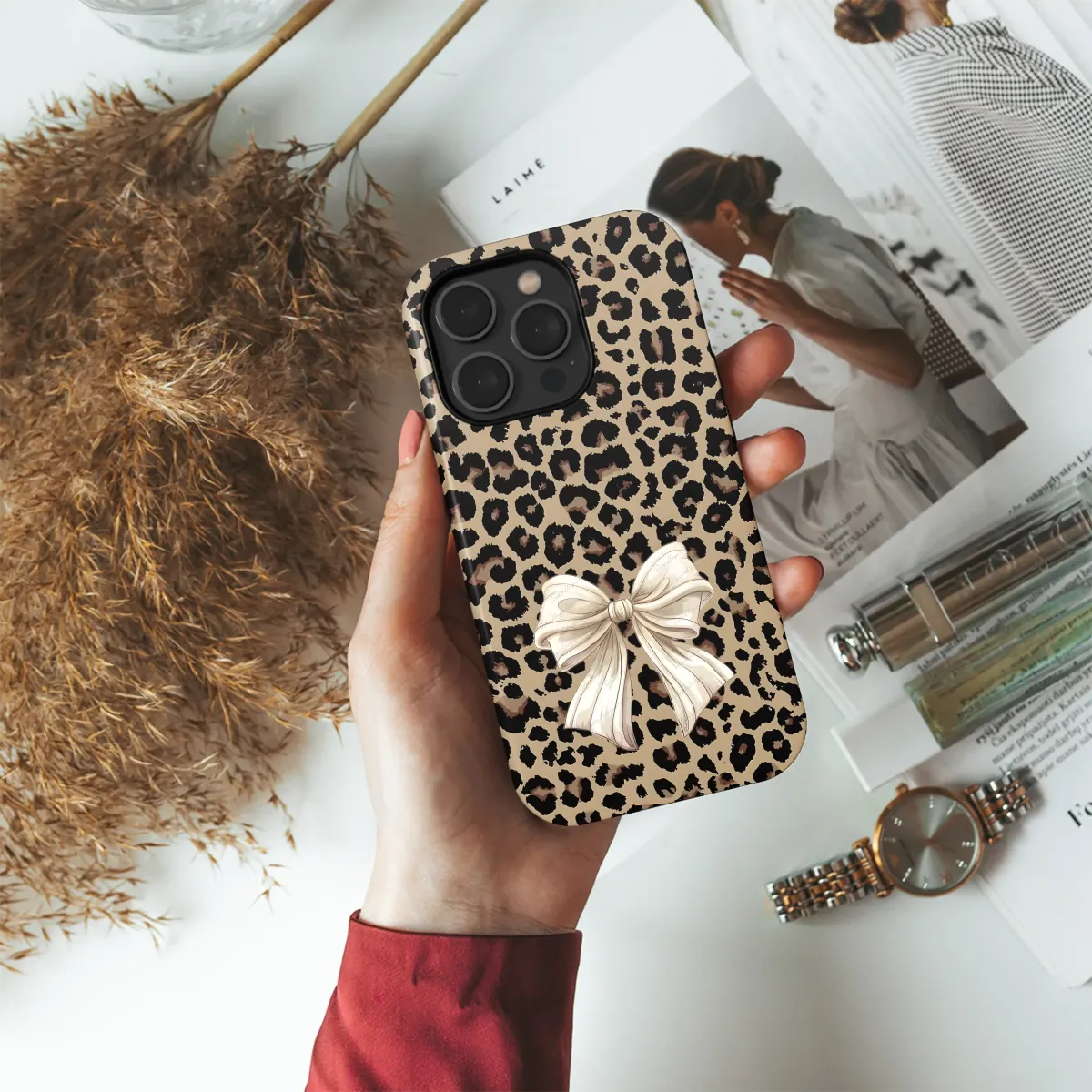 Unleash your inner wild child with this chic and stylish animal print design, perfect for adding a touch of edgy elegance to your everyday essentials. Featuring a classic leopard spot pattern in a warm neutral palette, this design is both timeless and trendy. A delicate, creamy bow adds a touch of feminine charm and sophistication, creating a captivating contrast against the bold background. Ideal for those who love to express their unique style, this design is versatile and eye-catching. Use it to create personalized accessories that reflect your personality and make a statement. Get ready to turn heads and embrace your wild side with this stunning leopard and bow pattern. Great for leopard print lovers, animal print art, personalized gifts, bow designs, and unique custom accessories. This design adds a stylish touch to any tech accessory.