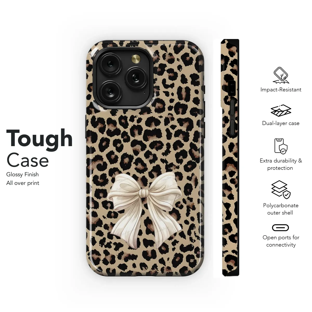Unleash your inner wild child with this chic and stylish animal print design, perfect for adding a touch of edgy elegance to your everyday essentials. Featuring a classic leopard spot pattern in a warm neutral palette, this design is both timeless and trendy. A delicate, creamy bow adds a touch of feminine charm and sophistication, creating a captivating contrast against the bold background. Ideal for those who love to express their unique style, this design is versatile and eye-catching. Use it to create personalized accessories that reflect your personality and make a statement. Get ready to turn heads and embrace your wild side with this stunning leopard and bow pattern. Great for leopard print lovers, animal print art, personalized gifts, bow designs, and unique custom accessories. This design adds a stylish touch to any tech accessory.