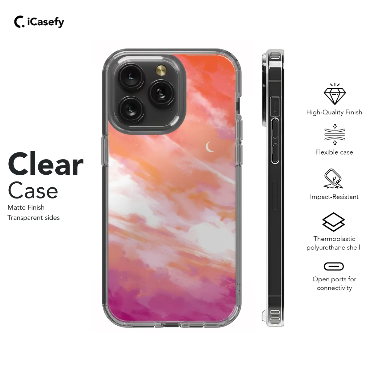 Express your pride and style with our exclusive Lesbian Sky Phone Case! Designed for a perfect fit on iPhone, Samsung, Pixel, and more models, this case features a vibrant and eye-catching lesbian flag motif against a breathtaking sky backdrop. Its durable construction shields your phone from scratches and falls, while its slim profile ensures a comfortable grip. Choose your phone model and show off your true colors with this one-of-a-kind accessory!