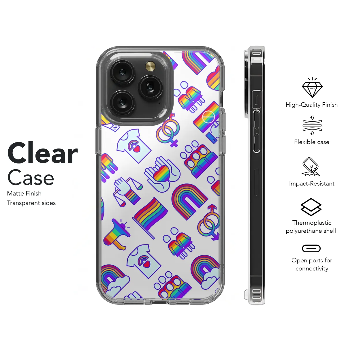 Express your pride with our exclusive LGBT phone case! Show your support for the LGBTQ+ community with this vibrant and stylish accessory, available for iPhone, Samsung, and Pixel devices. Its durable construction safeguards your phone from scratches and bumps, while its eye-catching design celebrates diversity and inclusivity. Be proud to own a piece of this meaningful collection, where every purchase contributes to a stronger and more visible LGBTQ+ community.