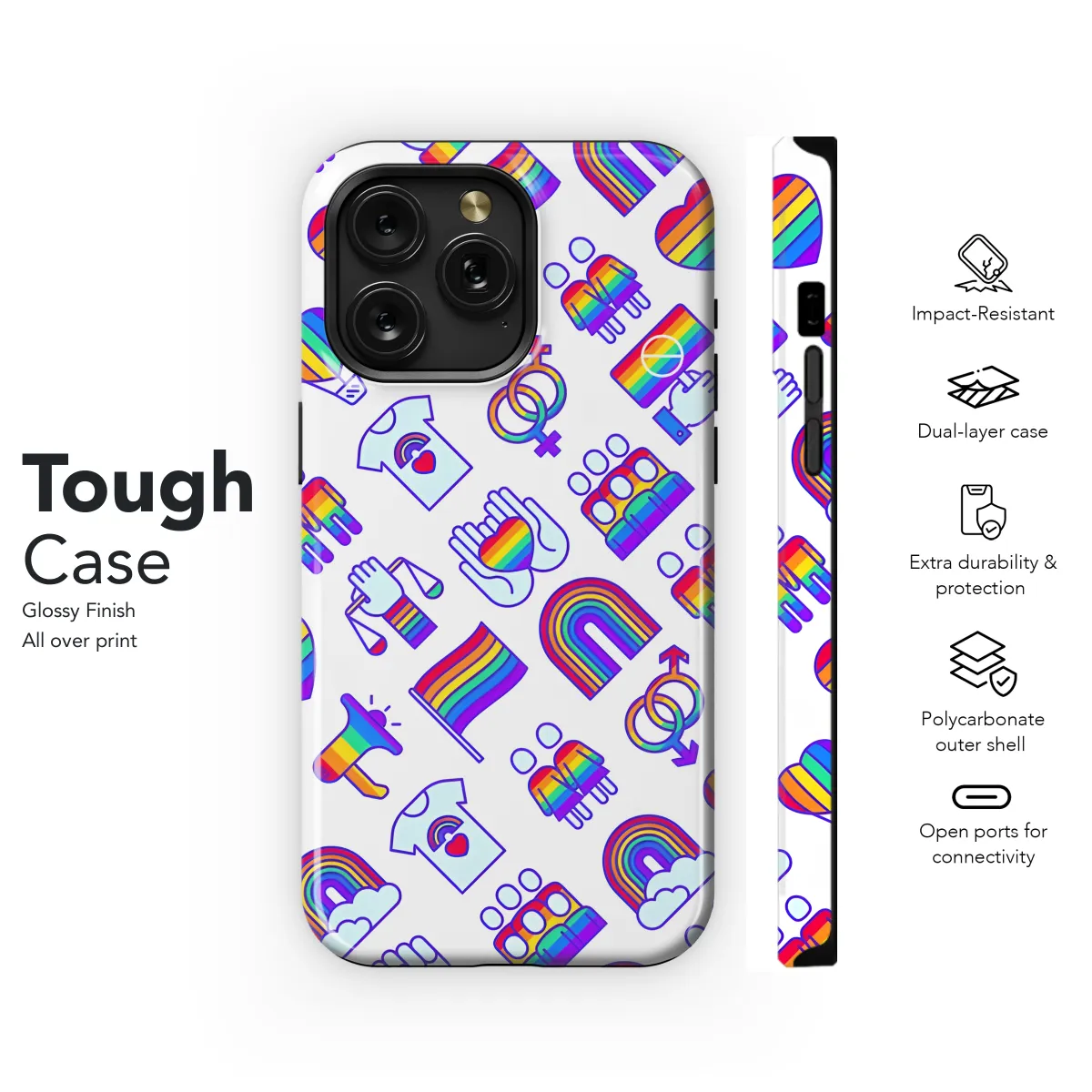 Express your pride with our exclusive LGBT phone case! Show your support for the LGBTQ+ community with this vibrant and stylish accessory, available for iPhone, Samsung, and Pixel devices. Its durable construction safeguards your phone from scratches and bumps, while its eye-catching design celebrates diversity and inclusivity. Be proud to own a piece of this meaningful collection, where every purchase contributes to a stronger and more visible LGBTQ+ community.